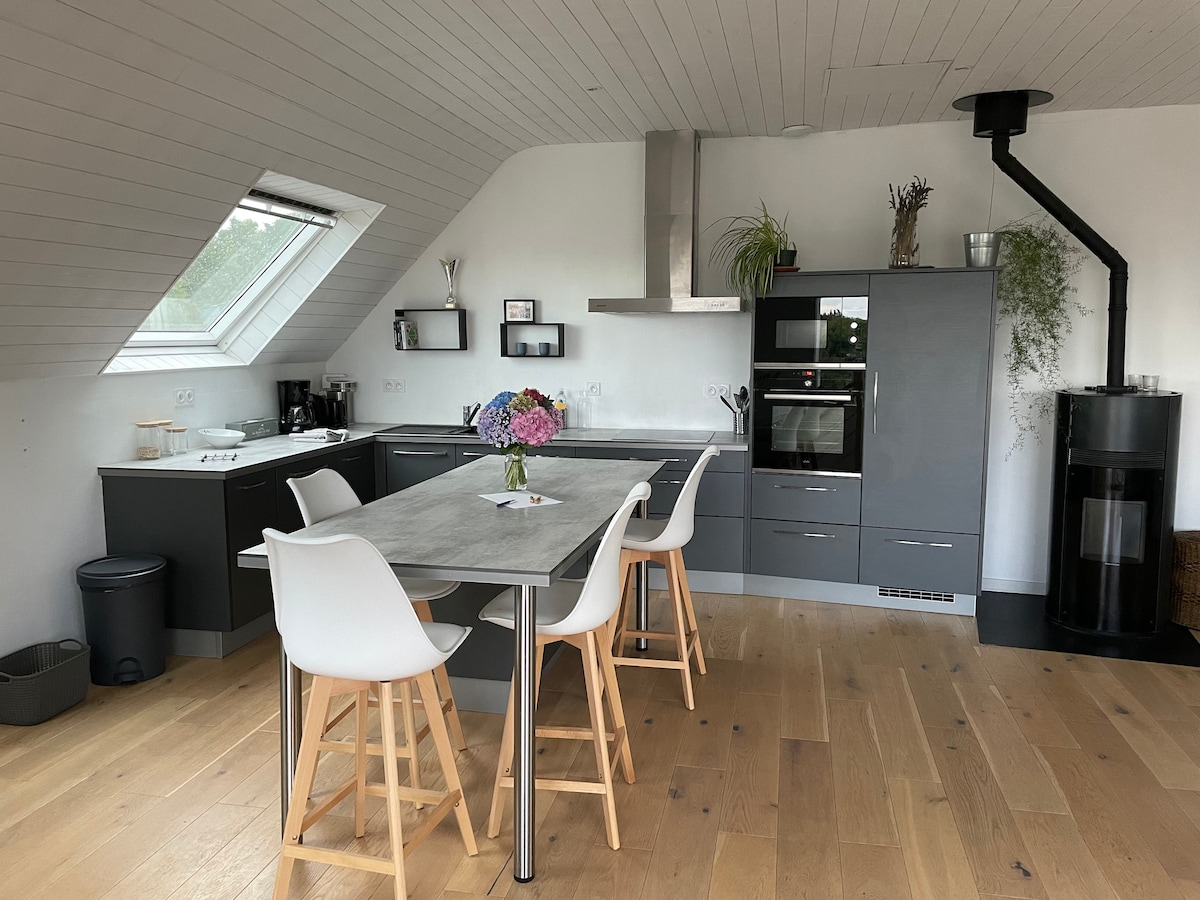 Do you dream of staying in a soothing setting that combines comfort and nature? In a quiet village, this sea view apartment of more than 70m2, on the ground floor of an architect house, high standard, divided into 2 apartments, is for you! Close proximity to the city of Brest, a beach, St Jean chapel, a forest, a coastal path... For those curious about wildlife, it's not uncommon to see the window: deer, foxes, pheasants ...