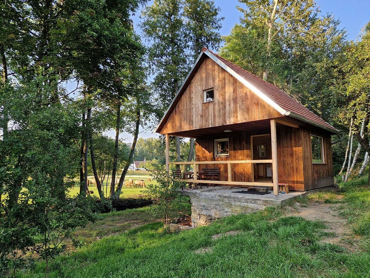 The Lookout House with a panoramic window and spacious terrace resembles a boat hovering over the landscape. The smell of wood, a sofa and a fireplace with a comfortable kitchen form a well-tuned whole. It can comfortably accommodate 3 adults or 2 adults and 1 child. We built the cottages with love, with an emphasis on minimalist modern design, in harmony with nature. Located above the beautiful Šumava valley. Come and enjoy the peace and quiet with a magnificent view of the surrounding hills. You can relax in the new Finnish sauna (paid separately).