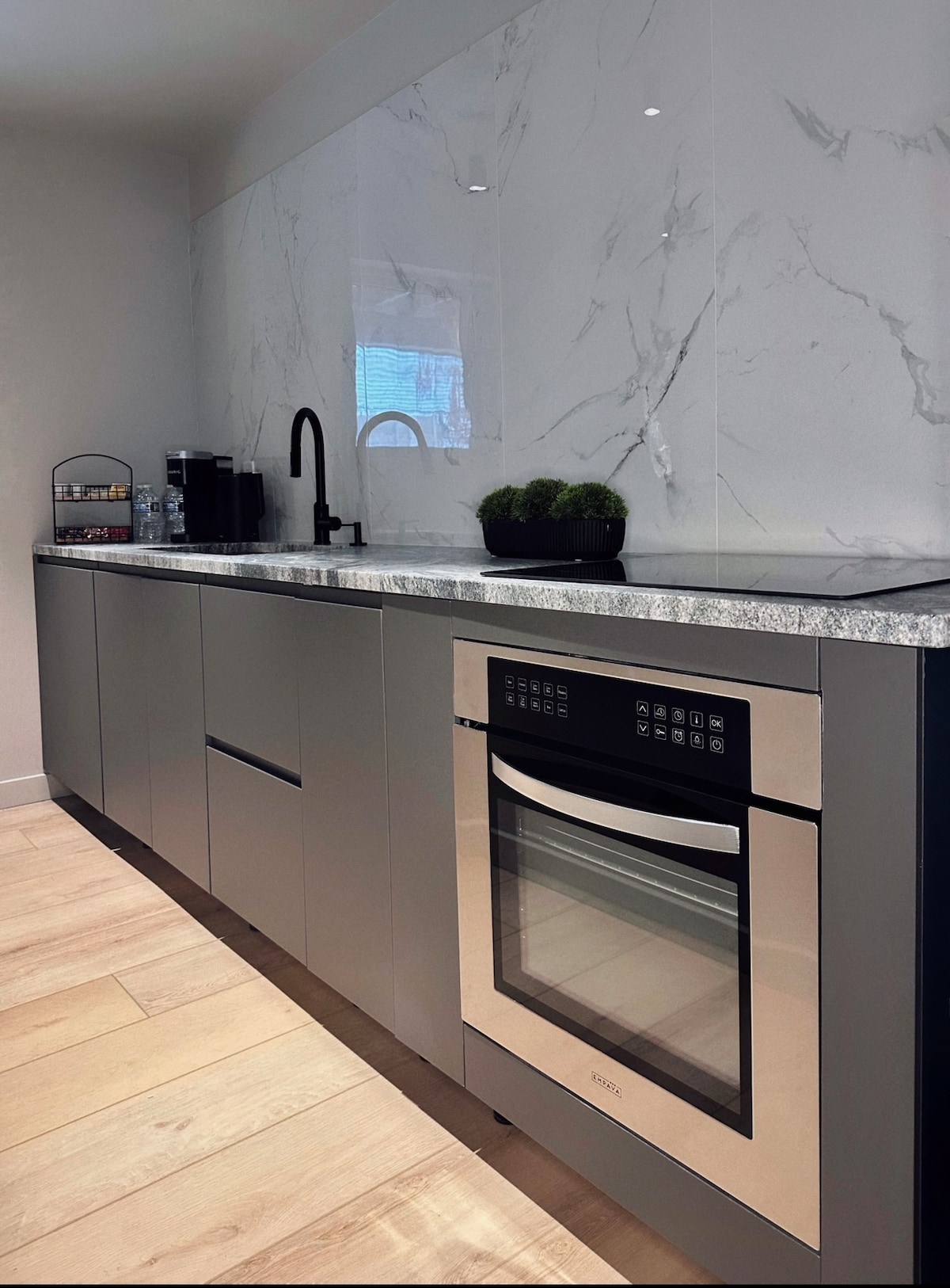 Welcome to the modern cozy atmosphere! This stylish place impresses with its brand new complete renovations. The new kitchen is equipped with the latest appliances, providing the perfect conditions for preparing your favorite meals. The private parking ensures convenience for guests, offering confidence in the safety of their vehicle. spacious folding sofa is perfect for coziness and comfort. It will serve as an excellent additional space for two people, providing both style and convenience.