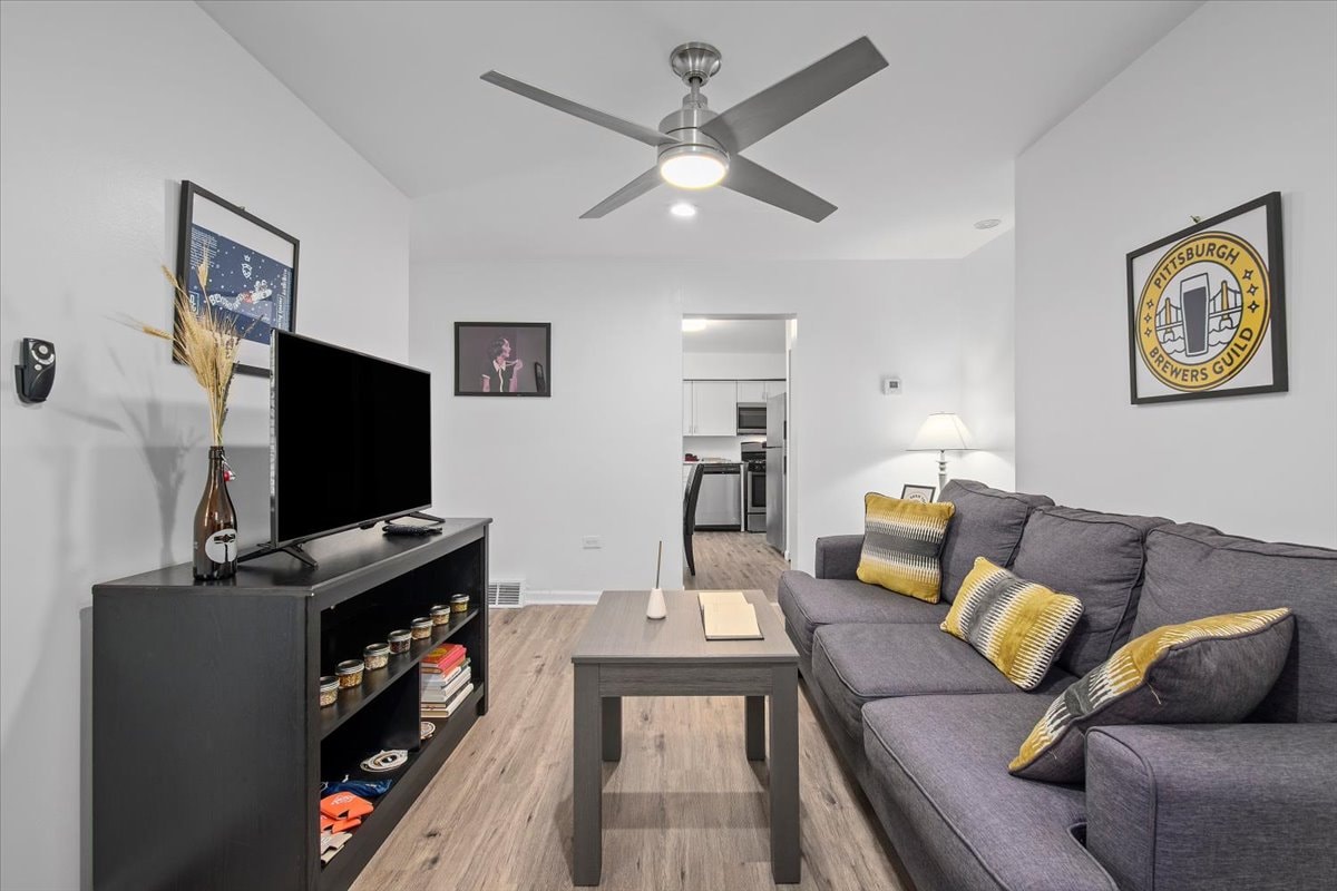 Welcome to our sleek and inviting 1-bedroom apartment in downtown Pittsburgh—perfect for Steelers fans! Enjoy being just steps from the city’s top attractions and restaurants, with Steelers Stadium only a short drive away. The unit features a thoughtfully designed living area, a fully equipped kitchen for cooking and a cozy bedroom perfect for relaxing after a day of exploring the city. Whether you're visiting for work or leisure, our unit offers a serene and central home base for your stay.