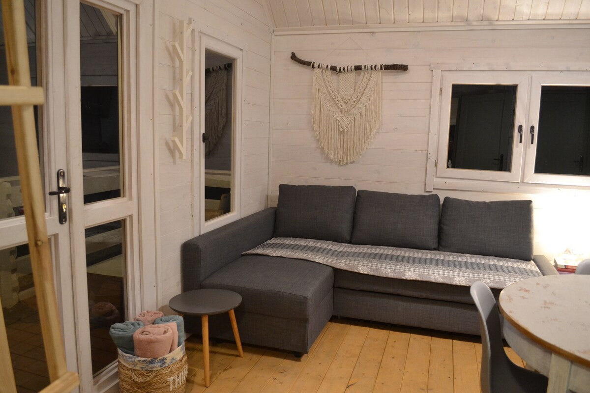 A place to stay and relax for the family. Comfortable cottages on the lake, 100 m from the beach, peace and quiet from the city noise, contact with nature. Upstairs there are two separate bedrooms, each with a single and double bed, downstairs there is a living room with a kitchenette, a bathroom and a double sofa bed. The cottage is fully equipped with a terrace from the bedroom with a beautiful view of the lake and forest. The perfect place to relax. On-site quad and tourist bike rental.