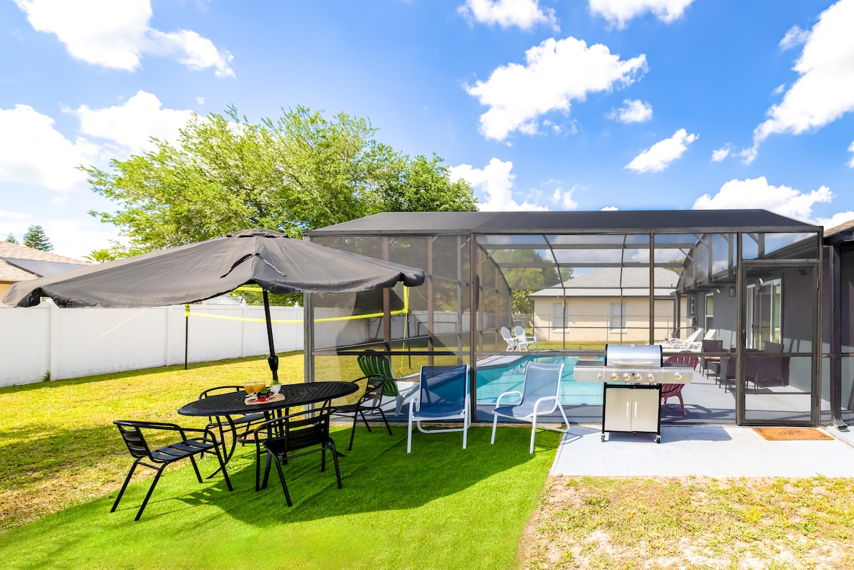 Relax in this calm, stylish and FULLY RENOVATED residential HOME. Enjoy with the whole family our PRIVATE POOL & BBQ GRILL with LAKE VIEW. Located in Kissimmee Florida, in a quiet residential neighborhood. Master Suite with view to Pool & BBQ outdoor area. 3 bedrooms, 2 bathrooms, fully equipped kitchen, 2 car garage, 3 Smart TV's and strong Wi-Fi all around the house. Have unforgettable moments at our BBQ area next to our private screened pool. Sunsets by the lake are breathtaking.