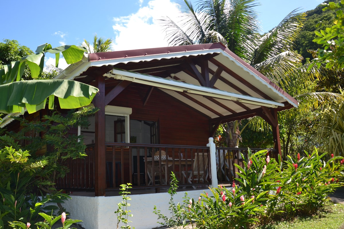 Vivez une expérience unique ! immergée dans un jardin tropical, bingalow vue imprenable sur la mer et la réserve Cousteau. Accessible par un chemin très pentu sur 100m, vous ne pourrez y accéder qu'à pied ou en 4x4 mais je monte vos valises et vos courses. Energie solaire et captage de rivière. Vous serez seuls à profiter de ce magnifique endroit. Venez vivre un moment en harmonie avec la nature et les éléments ! 10 minutes à pied de la mer, 20 de la plage. Cabane avec tout le confort