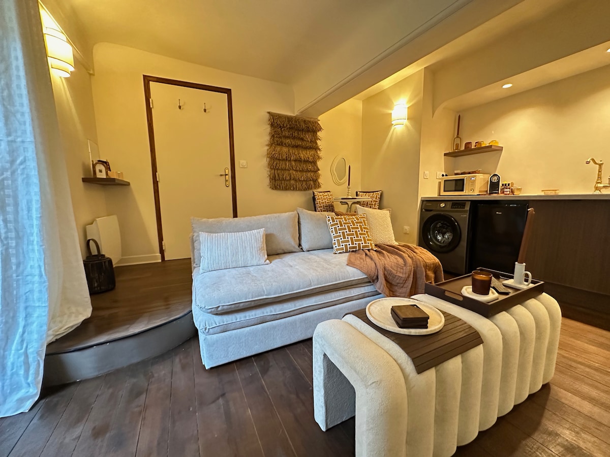 Get away from it all in this apartment in downtown Mâcon. Completely renovated to make you travel to the Pacific Islands: green wall, hanging egg, wooden sink… a real cocoon to relax in. You will have at your entire disposal 60 m2 including a living room, reading area, dining room, separate toilet, kitchen as well as a master suite with its green marble bathroom. Self 🔐check-in 🍬Goodies 🛌 Linens and towels provided ☕️ Nespresso pod