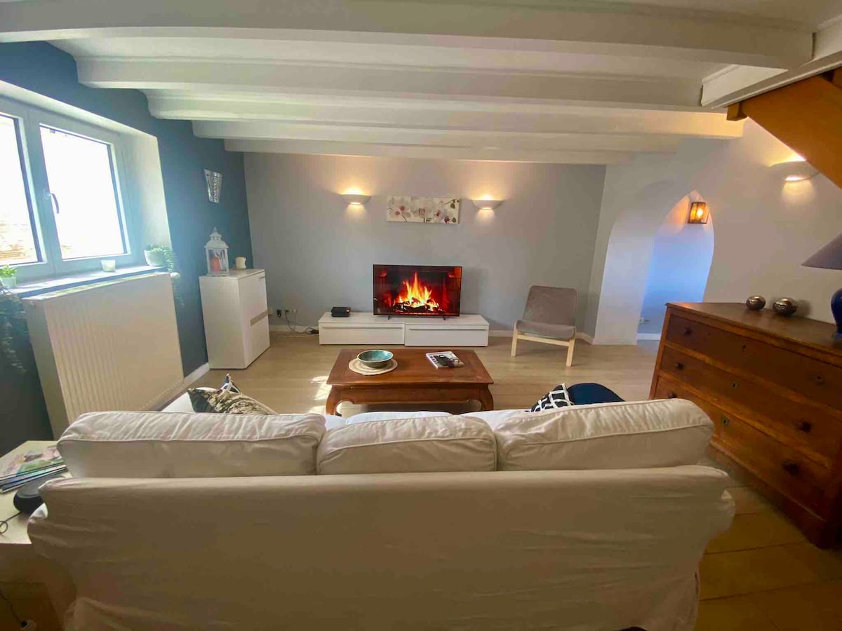 The dressing room is a penthouse apartment, rooftop with upscale amenities. You can enjoy 60m2 for up to 3 people (the third bed is an extra, 1-person sofa bed from Maison du Monde). The lodge is the perfect combination of comfort and tradition: exposed woodwork, air conditioning, fiber optic and TV channels, fully equipped kitchen, chosen decoration, exhibition of works of art, terrace, balcony, private parking for an additional fee.
