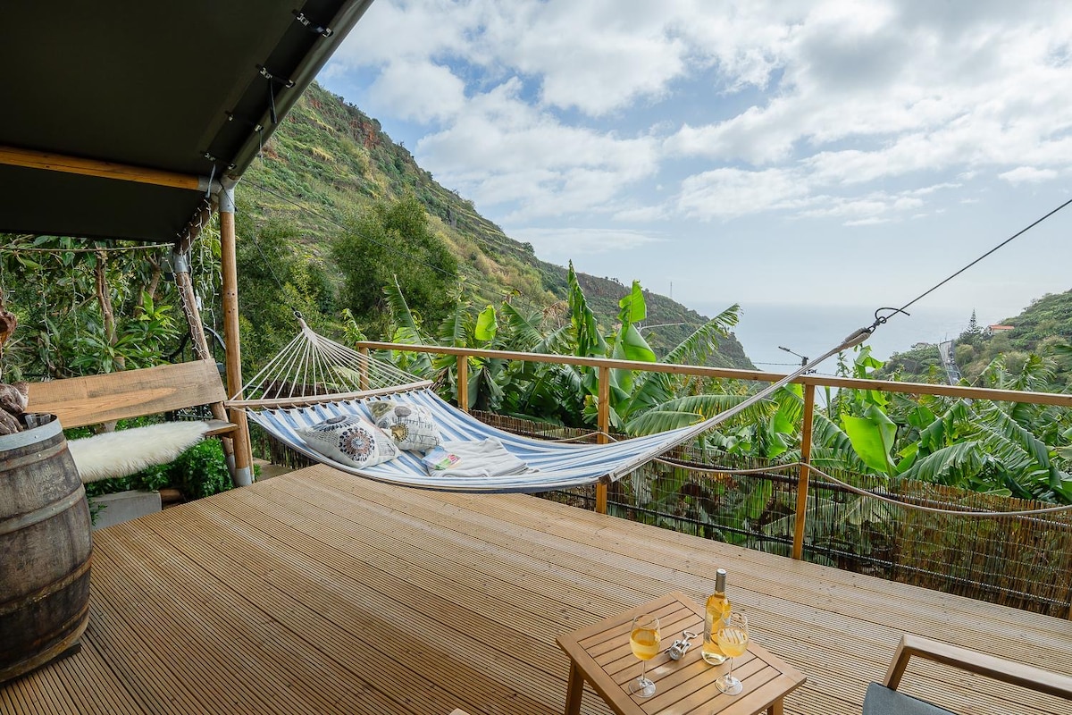 Located in the north-western part of the island ,its an amazing location protected by conservation laws that have kept the area free of over development. With epic mountain and sea-views (the photos don't do it justice) the tents are located 450m above the coastline. If a place to relax and unwind is what you after then this would be the place to come to. There are also some amazing levada walks to explore in the area.There are three tents on the property so you might neighbours.