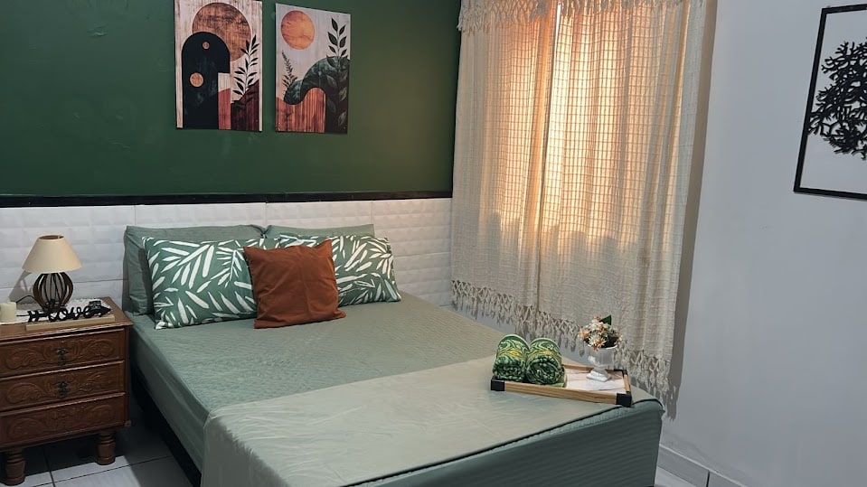 Two-story house, fully private house, only the entrance is a common area The garage is offered as a courtesy. If your vehicle can normally go up the access ramp, it is available at no cost. If you prefer to park in front of the house with peace of mind *See photo #3 IN THE MASTER BEDROOM Alexa Air-conditioned Smart Cama Queen single bed RESERVE BEDROOM single bed Ventilador Kitchen, cooktop, refrigerator, dining table, microwave, electric coffee maker 800mb Wi-Fi, 24-hour Camera, residential monitoring