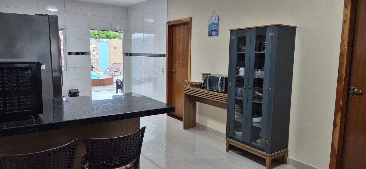 The house is cozy, airy, and thoughtfully prepared so your stay is practical and worry-free. ✅ Private pool just for you ✅ Covered barbecue area ✅ Air conditioning in the bedrooms ✅ Wi-Fi available ✅ Smart TV with streaming ✅ Fully equipped kitchen ✅ 2 parking spaces ✅ Clean and well-kept home ✅ Quiet, family-friendly neighborhood ✅ 900m from the beach Perfect for couples, small families, or remote work. Arrive, relax, and enjoy!