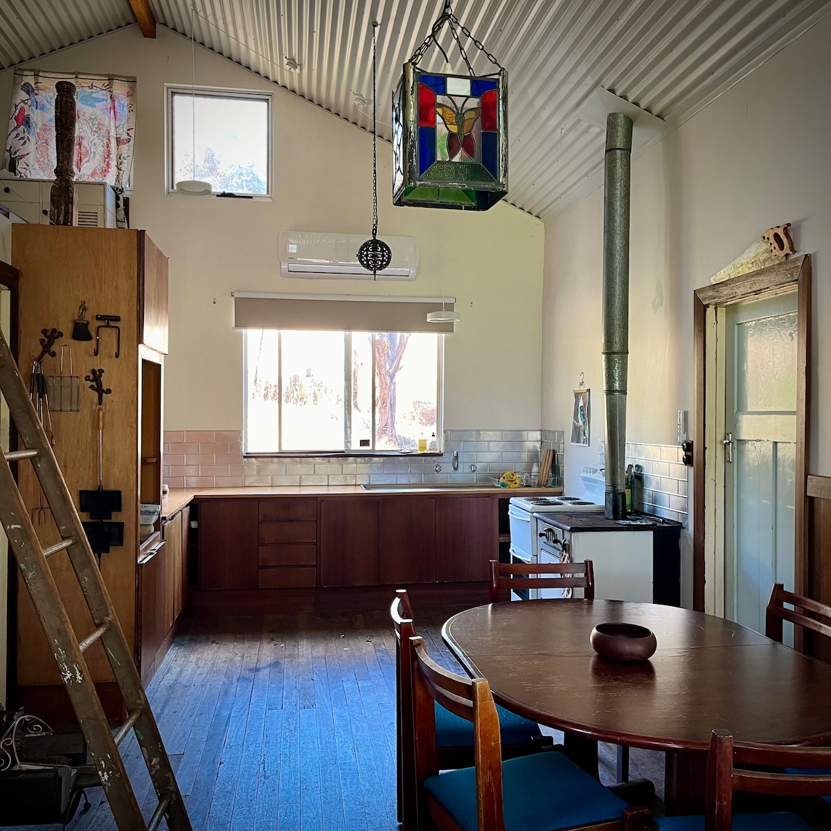 Bird Song is an eco shack built and furnished with recycled and vintage materials. Bird Song is located on a bush block at the edge of Boddington town with the Hotham River reserve across the road and a large farm over the back fence. Bird Song is a 7 minute stroll into town which offers an IGA, bottle shops, cafes, playground, skate bowl and op shop. The path over the road leads to the beautiful Darminning (Ranford Pool) which is a favourite swimming hole.