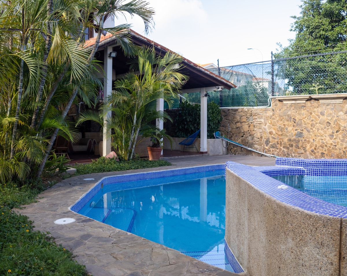 Relax in this unique and quiet getaway. Perfect for enjoying with the family, in a spacious place perfect for children and adults, with an extraordinary view. 📍Excellent Location: Pampatar 🚶A few steps from the beach club and restaurants. 🚗 3 min from Sambil Margarita The accommodation has 3 bedrooms, each with its own private bathroom. The master bedroom has a king-size bed, a hammock, and a large bathroom with a dressing room.