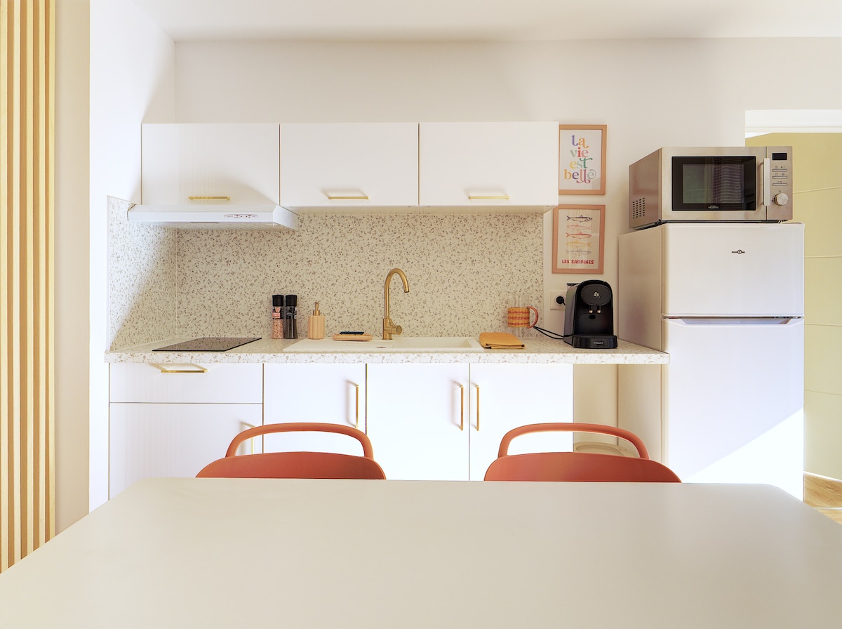 Escape to the breathtaking Blue Coast and experience Provence in a studio thoughtfully designed by architect owners. Wake up to stunning hill & sea views from your private terrace and enjoy all the modern comforts. Walk to the sandy beach and explore the coves with a complimentary sea kayak. Conveniently located 10 minutes from the local train station and 25 minutes from Marseille airport with free parking. An unforgettable adventure awaits on the Blue Coast of Provence!