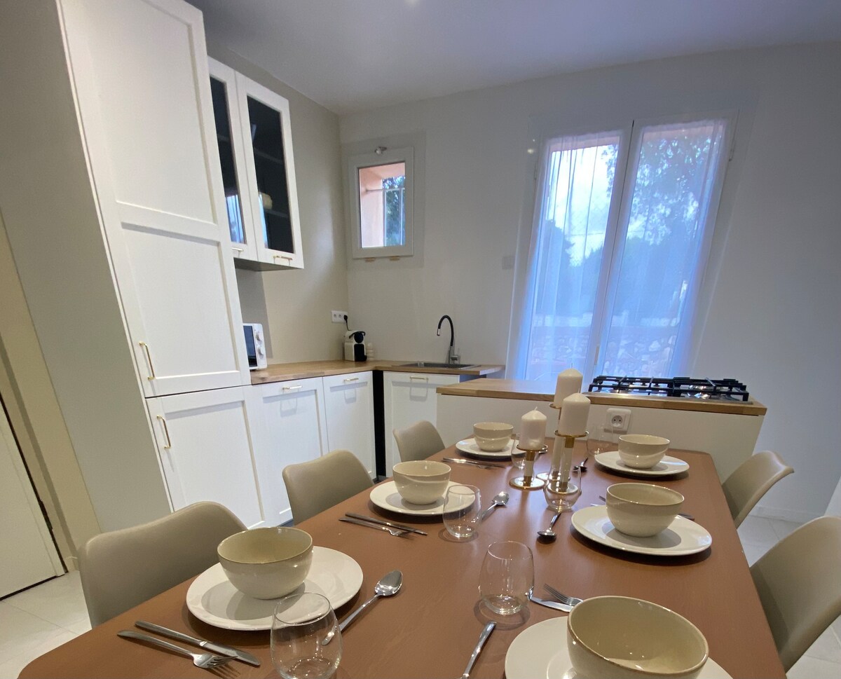 In the house (58 m2) you will have a bedroom, an office, a very bright and pleasant main room, a fully equipped kitchen and plenty of storage. Parking is available in front of the house (free space). You can go to the beach, do your shopping and enjoy our "sardinades port de boucaines" during the summer without taking your car, everything is nearby. Ideally located for the proximity to the Côte Bleue as well as the Calanques of Marseille