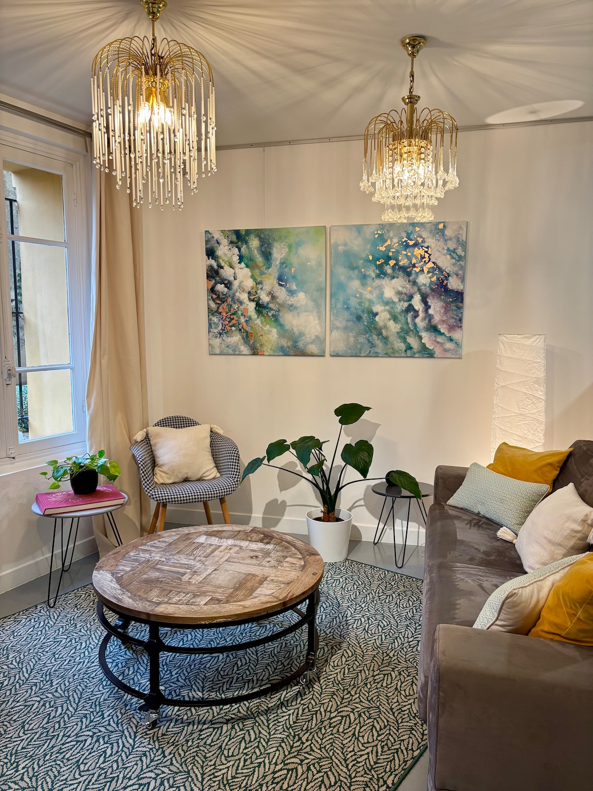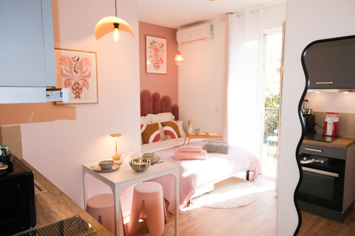 Ideally located in the city center, in a beautiful area, minutes from Avenue Jean Médecin, public transport and the beach. UNIQUE design apartment, completely refurbished and crafted with quality materials to offer you an UNFORGETTABLE stay in our region. Whether you're a couple with or without children, a group of friends, or an intrepid traveler, on vacation or on a business trip, you'll have no trouble feeling at HOME!