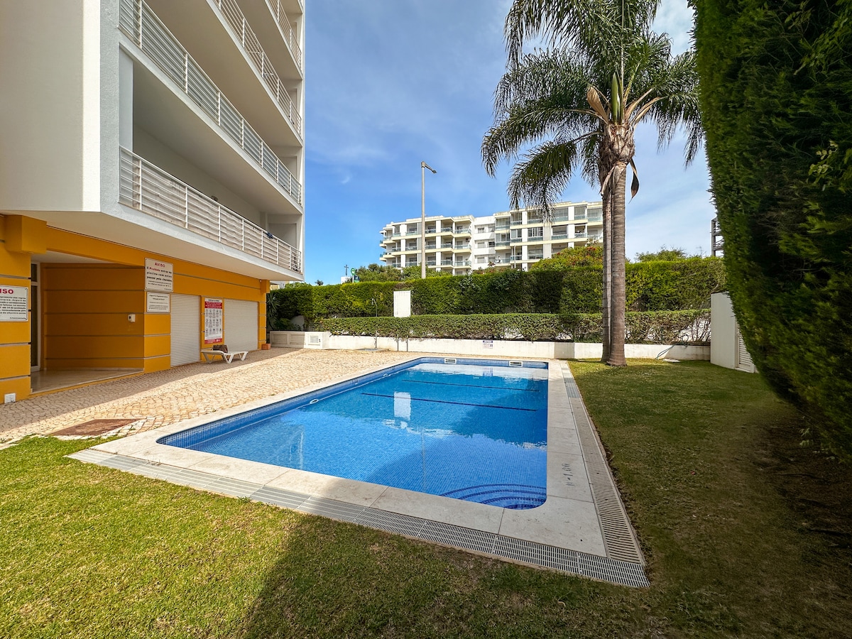 This cozy apartamento is situated in the private condominium , Edif Cruzeiro, two minutes from the beach, shops, restaurants, bars, Has a pool which is open in the middle and high season, two lifts, and a small supermarket ouside of the building. T1 consist in one bedroom with a double bed, TV , desk , black out curtains, bathroom with bath. Kitchinette with table and chairs, full fitted . Livingroom with sofa bed, sleeps two. Wifi fiber