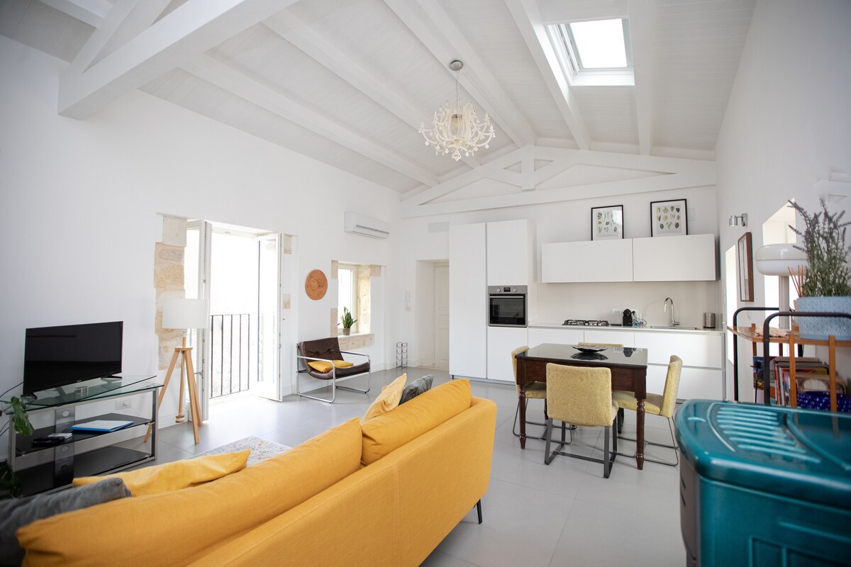 Dionisio 6 is an elegant, cozy and warm ground floor apartment, located in the Jewish neighbourhood of "La Giudecca" in the heart of ORTIGIA, just 50 mt from the sea. Our loft has been completely renovated in 2021 through a careful conservative restoration using the highest quality materials in order to respect the characteristics of the ancient building in which it is located. Functionality and design have been mixed with the antiquity of the architectural structure.