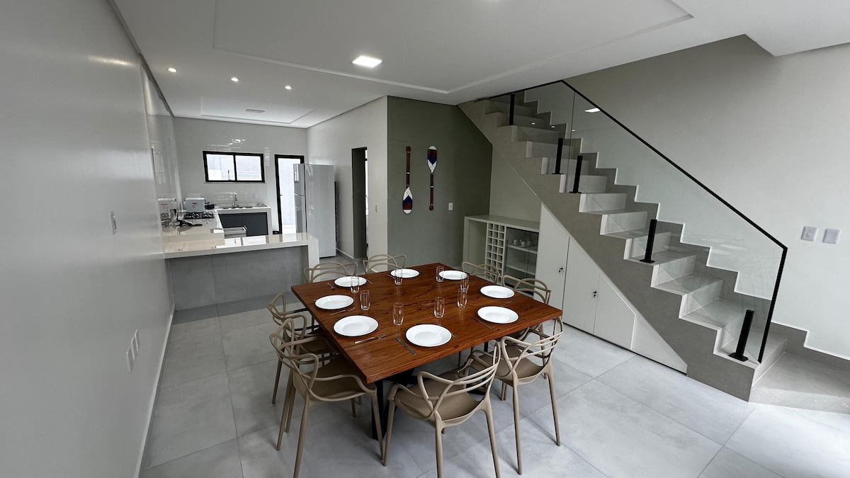 Leisure, comfort and tranquility in Porto Seguro! New duplex on the edge of Taperapuan, 150 meters from the beach. The street has markets, restaurants, snack bars and laundry. There are 3 air-conditioned bedrooms, 3 bathrooms, a living room, kitchen, laundry area, Wi-Fi and accommodates up to 9 people in comfortable beds. Condominium with 7 units, shared swimming pool and gourmet area. Each duplex has 2 parking spaces.