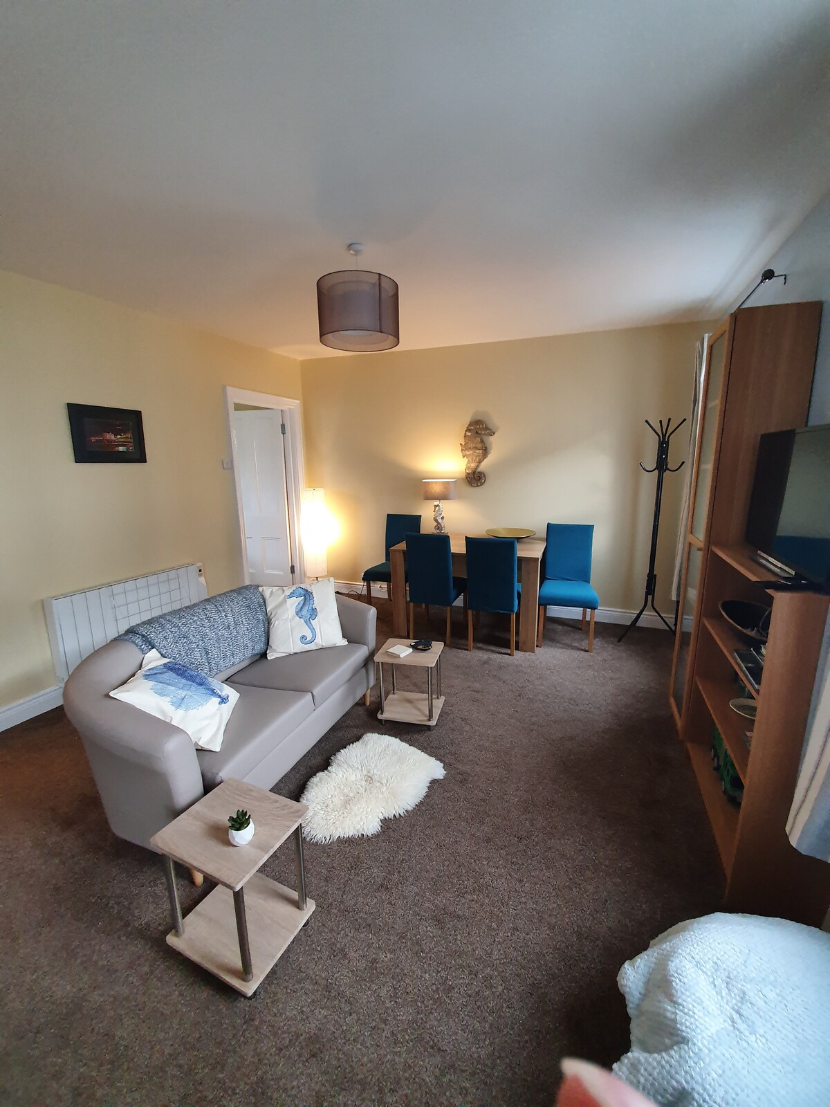 Tastefully newly decorated 2nd floor flat with amazing views of the Skerries and East Strand Beach. Central location next door to Portrush Library and only a 2 min walk to the Promenade and East Strand Beach. Everything in Portrush within easy walking distance. Only a 5 min drive to Royal Portrush Golf Club and close to all of the North Coasts famous attractions such as the Giants Causeway, Carrick-a-rede Rope Bridge and Game of Thrones locations like BallintoyHarbour and The Dark Hedges
