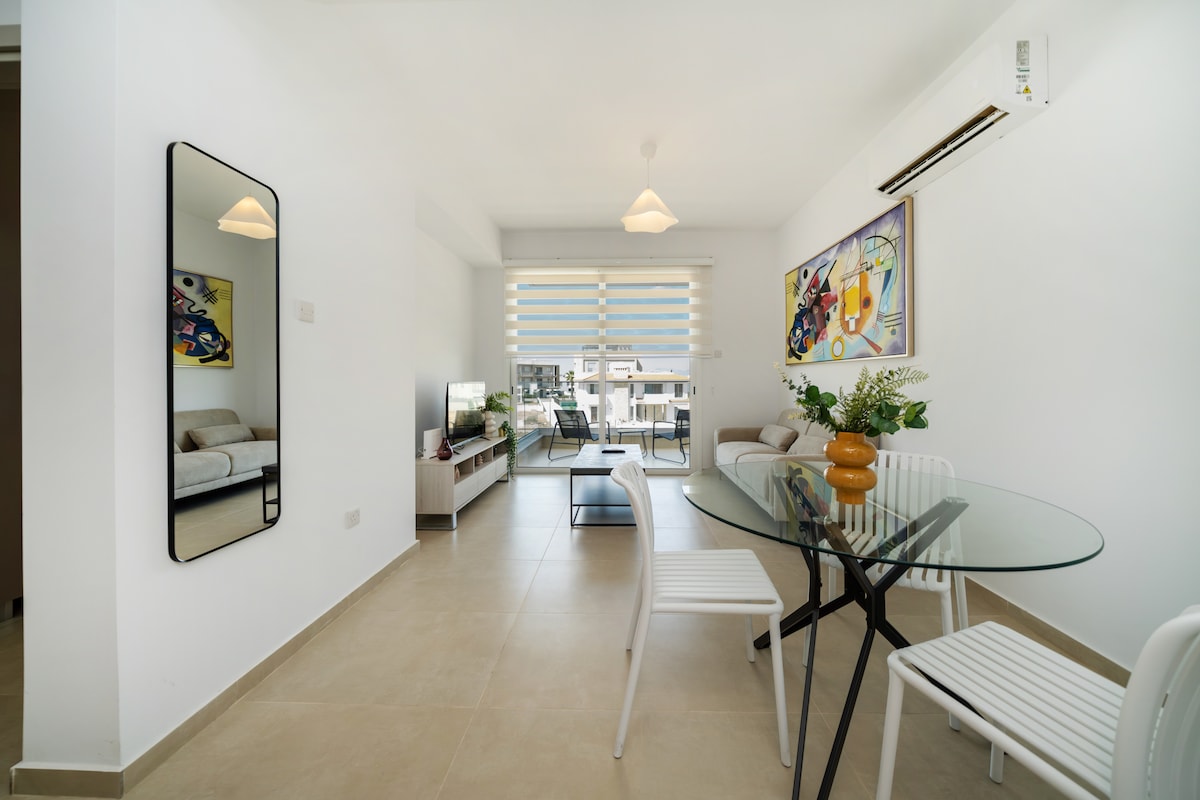 Welcome to our Stylish & Modern Studio Apartment! This brand-new, tastefully designed apartment offers a cozy and elegant home away from home in a quiet neighborhood, just minutes drive from downtown Larnaca and within walking distance to the beach. Enjoy the comfort of a stylish living area and unwind on the private balcony - perfect for a morning coffee or a relaxing evening. Ideal for both short getaways and extended stays.