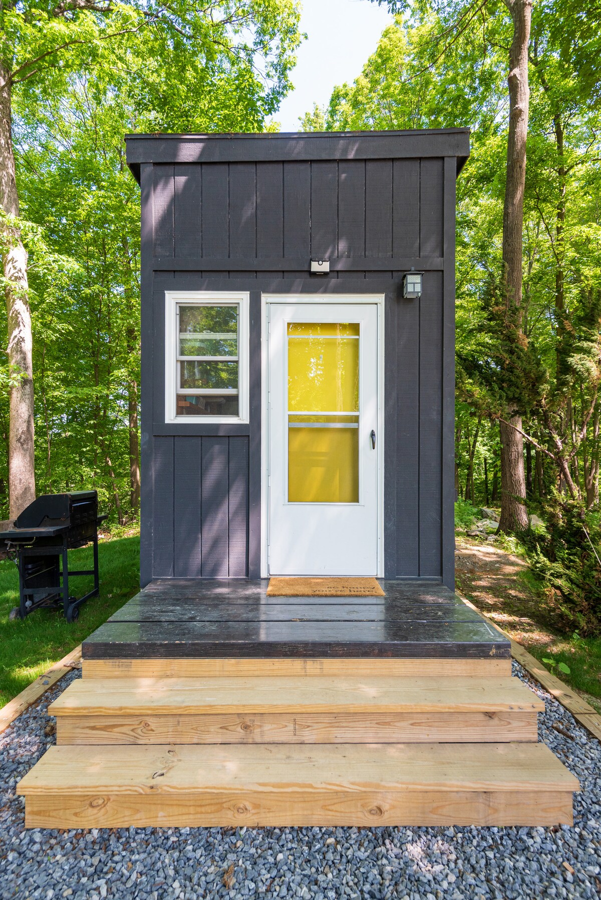 Reconnect with nature at this unforgettable escape. Sitting on the back side of beautiful 5 acre property, tucked in the woods along a beautiful lake. The Hosts home in on the property Come stay and unwind. Plenty to explore and just be. Lake access for swimming or with paddle board, canoe, or kayak. Just ask and can be assisted with. The whole property has been curated to be a magical oasis. Full bathroom inside Brand new Mini Split heat and AC unit. Has most kitchen amenities