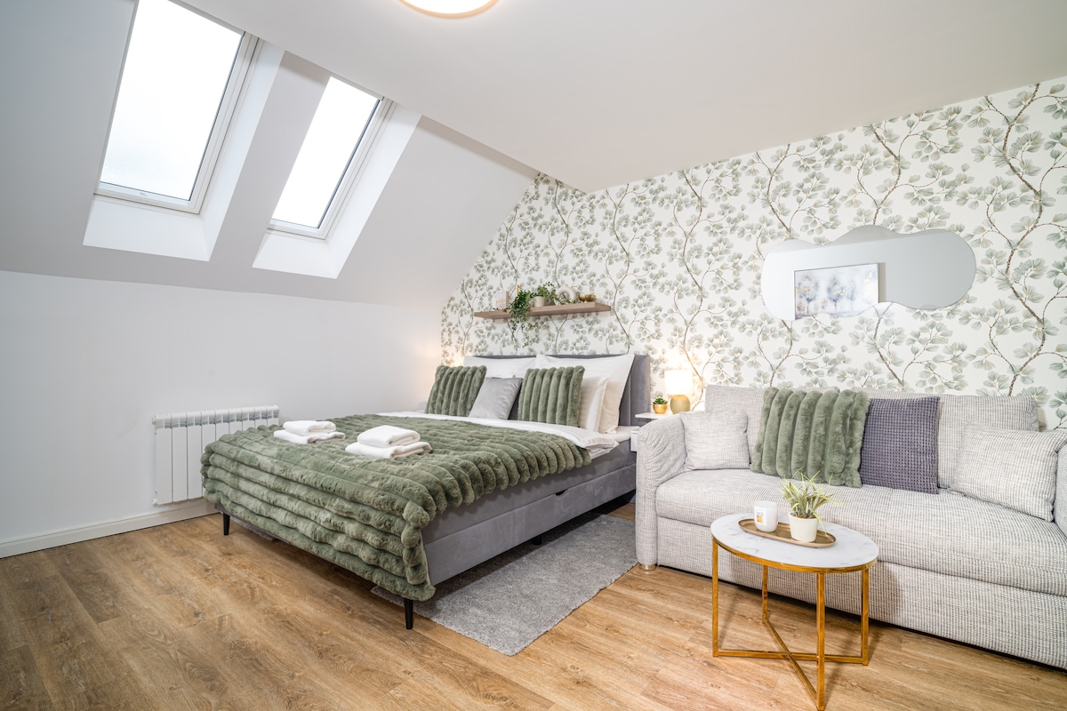 This stylish place to stay is perfect for group trips. Relax and unwind in our elegant design studio in Vinohrady. This cozy space includes a double bed, a kitchenette, and a modern bathroom. Enjoy Prague from the best spot and experience the lively local scene with cafes, shops, and excellent transport links. This apartment belongs to a group of units within the same category. While all units offer the same amenities, there may be subtle differences in color schemes and design elements.
