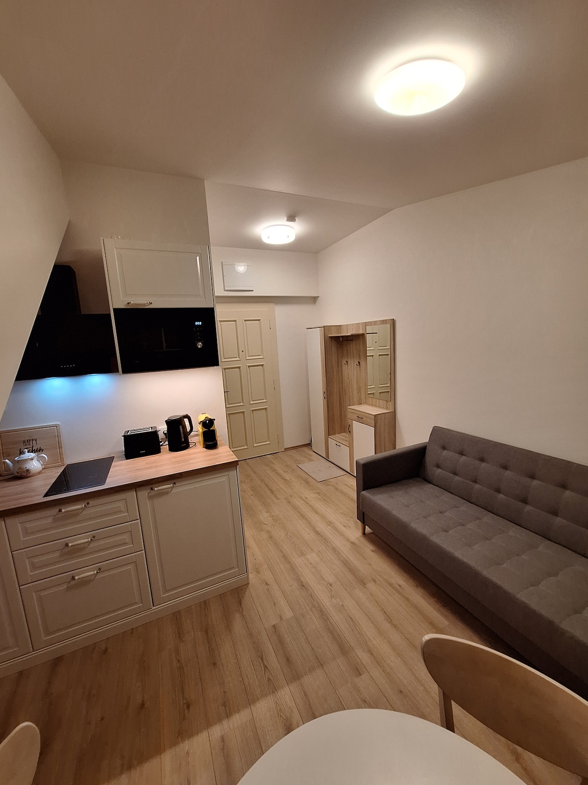 This studio was renovated in 2019. On evenings you will enjoy late sun coming throw quiet courtyard. In bathroom you can see cement tiles from Maroc and beds are done by our hands with comfortable large mattress and extra sized blankets. Location of the flat is perfect for your stay, because all you need is very close including huge public garage, tram stop, shops, restaurants, cafes, parks and museums. You can walk throw the park to the Old town or Castle.