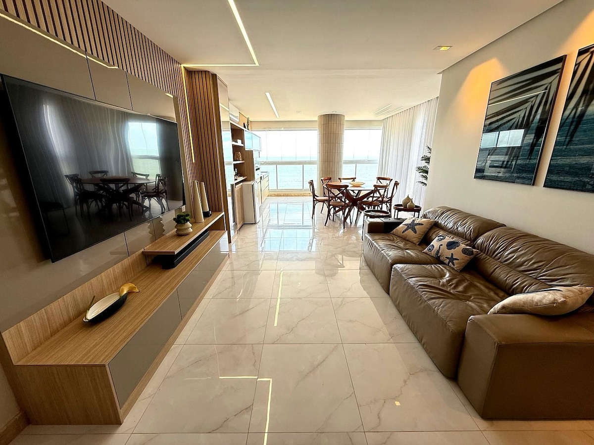 🚨PLEASE READ THE ENTIRE LISTING CAREFULLY BEFORE BOOKING. Your understanding is essential for an incredible stay. ✔Deluxe: Enjoy our special discount of R$80 if you choose to bring your own bedding and towels during your stay. Beautiful 3 bedrooms, facing the sea, between Praia dos Namorados and Virtudes! 🛜Wi-Fi 🚘Free covered garage. ❄️Air conditioning in 2 of the bedrooms 🛎️24/7 front desk 🏝️Oceanfront