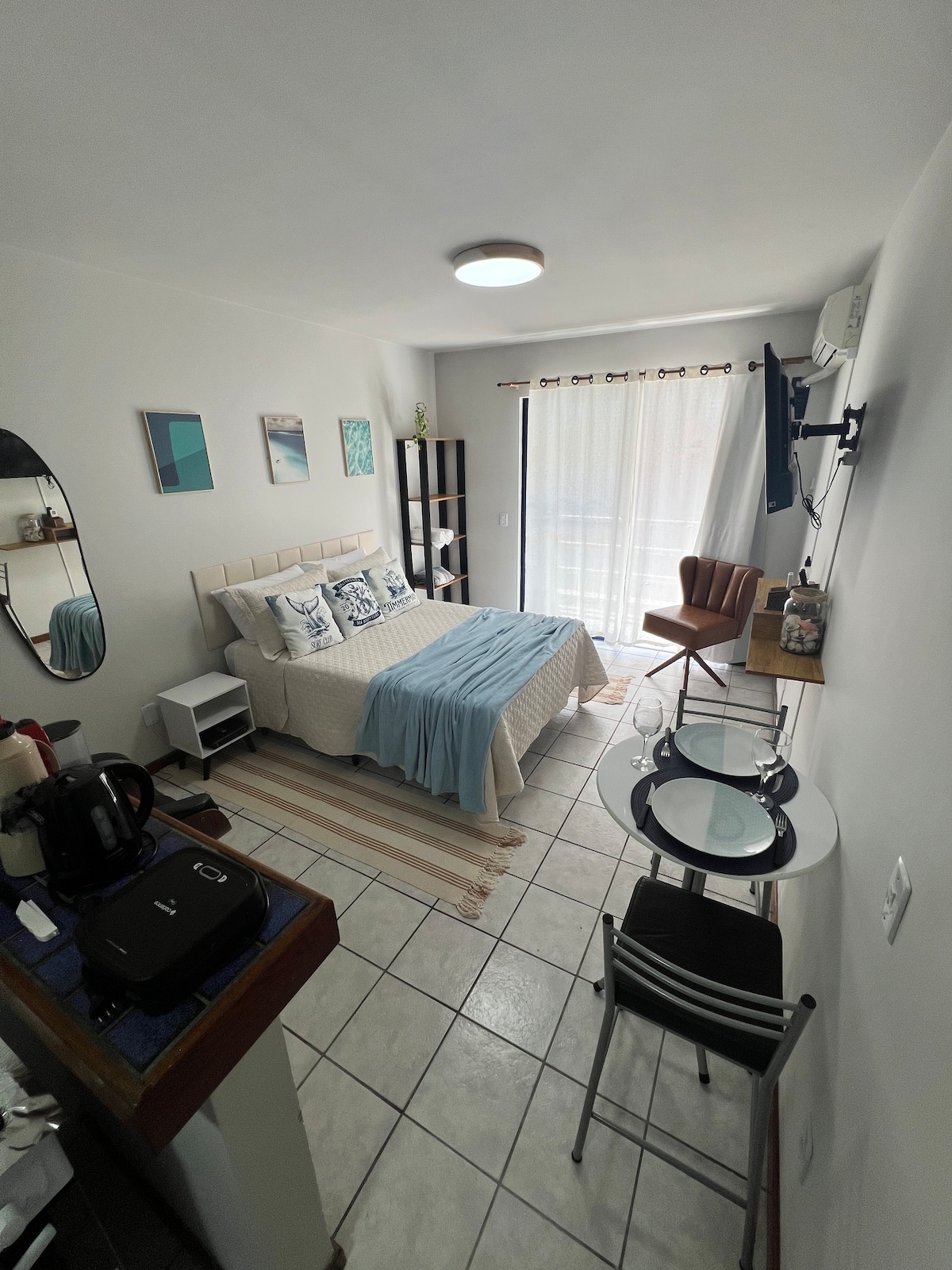 Kick back and relax in this calm, stylish space, with a privileged and wonderful view of Canasvieras. Compact minimalist loft, in a residential area, inside the Villa Floripa condominium, equipped with everything you need! With a cozy decor, this compact apartment is ideal for a wedding night or wedding anniversary. With a space reserved for a Notebook, inspired by studios for home offices, ideal for those who need to work. Come and see!
