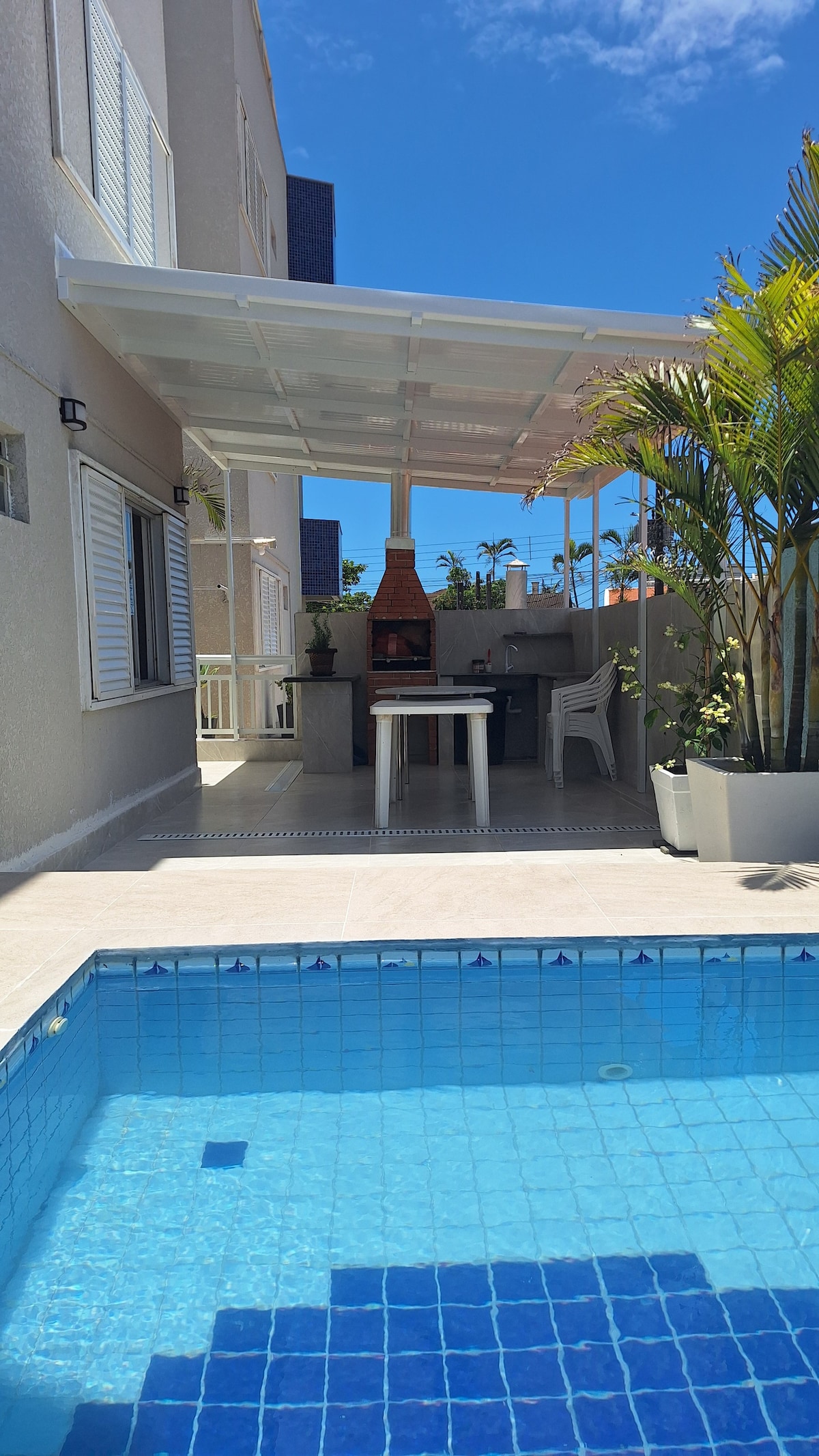 HIGH STANDARD PROPERTY with Heated Pool 32°C🌡️, 3 bedrooms, all with 12000 BTUs air conditioning (Only cold), 2 of them are suites, barbecue facing the pool, full kitchen, laundry, 2 parking spaces for medium-sized cars. PROPERTY ELECTRICAL VOLTAGE 110V. WE PROVIDE BEDDING, (Pillows with covers, sheets and microfiber blankets). WE DO NOT PROVIDE BATH AND FACE TOWELS. WE ACCEPT SMALL PETS.