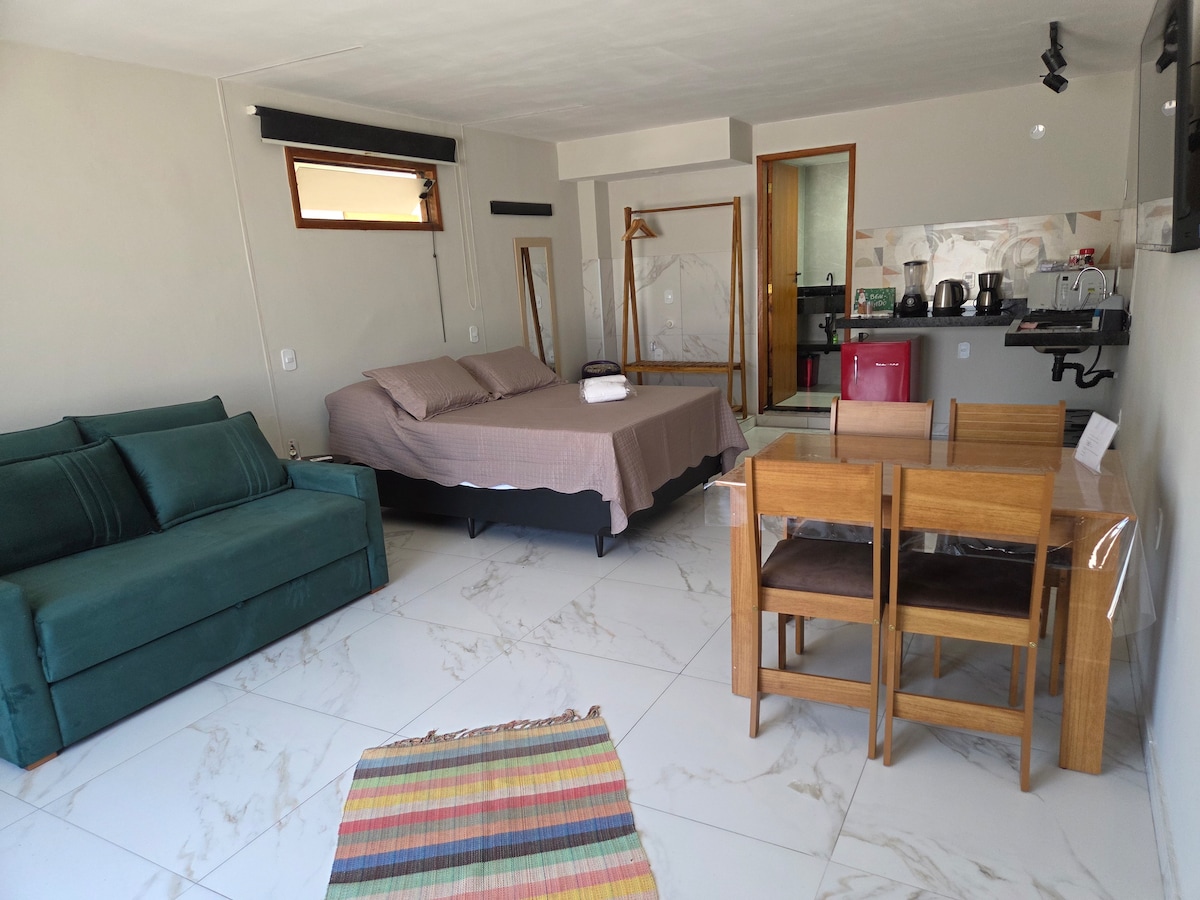 Want to spend a few days in Buzios? Near the Porto da Barra Gastronomic Center? We have what you need. Loft with suite, living room and kitchen with accommodations for up to 3 people with a double bed and a sofa bed. ATTENTION! Extra fee for the 3rd guest.