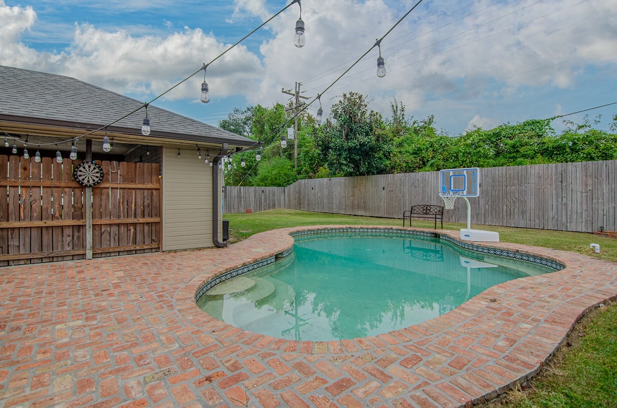 Welcome to Comfort Cozy Oasis—your family-friendly retreat near Baton Rouge! This spacious 5BR, 4BA gated home sleeps 10 and features a loft, large kitchen, EV charger, basketball court, swing set, and cozy fireplace. Enjoy fast Wi-Fi and a peaceful backyard, just 30 mins from LSU and close to New Orleans. Perfect for families or groups seeking comfort, space, and Southern charm!