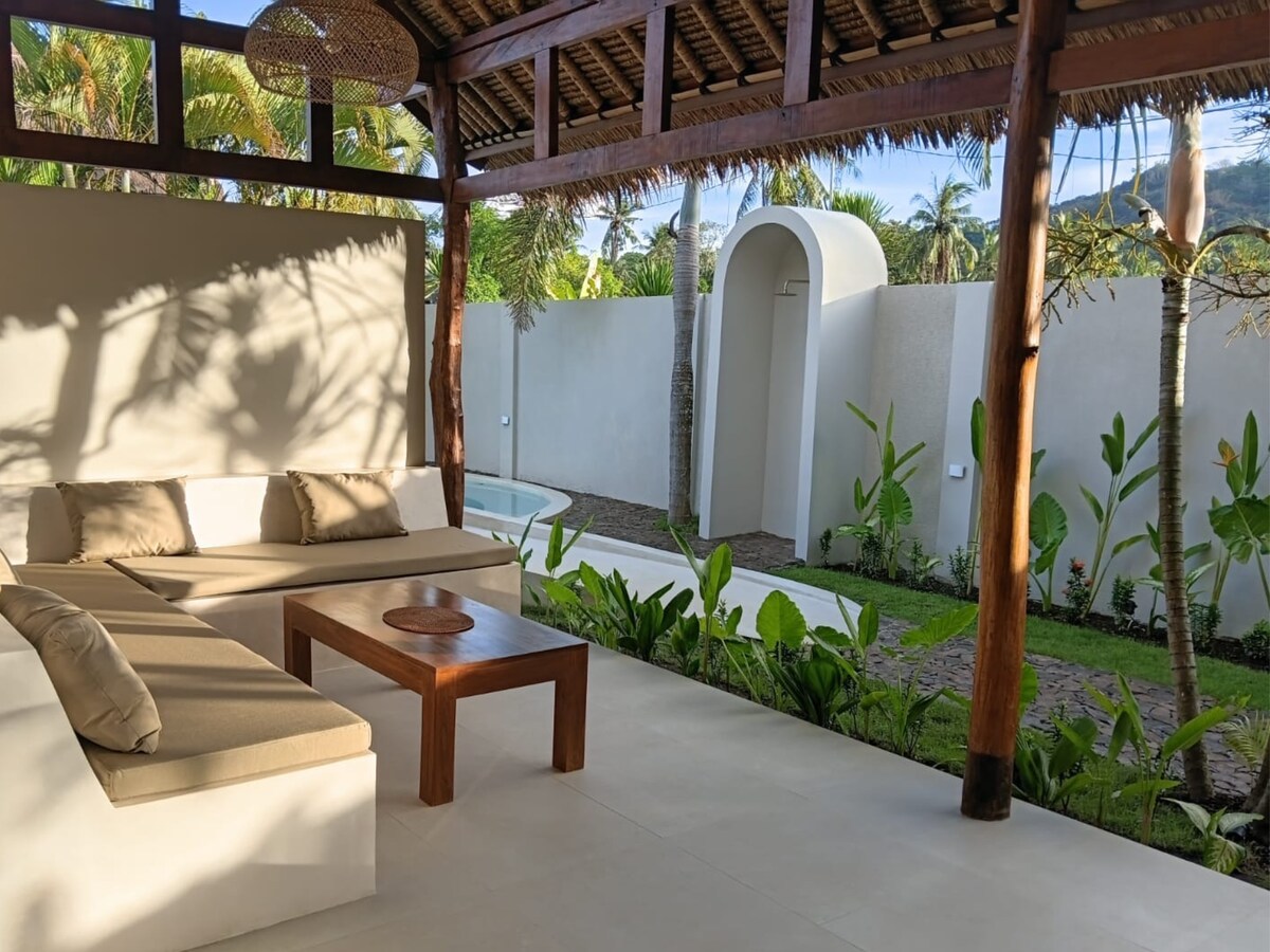 Peaceful one-bedroom villa in a quiet area of Kuta Lombok, just minutes from the beach, shops, and restaurants. Features a private pool, tropical garden, open kitchen-living space, modern bathroom, and a comfy work area. Extra bed and sofa bed available. Free daily cleaning included — your perfect mix of comfort, privacy, and convenience.