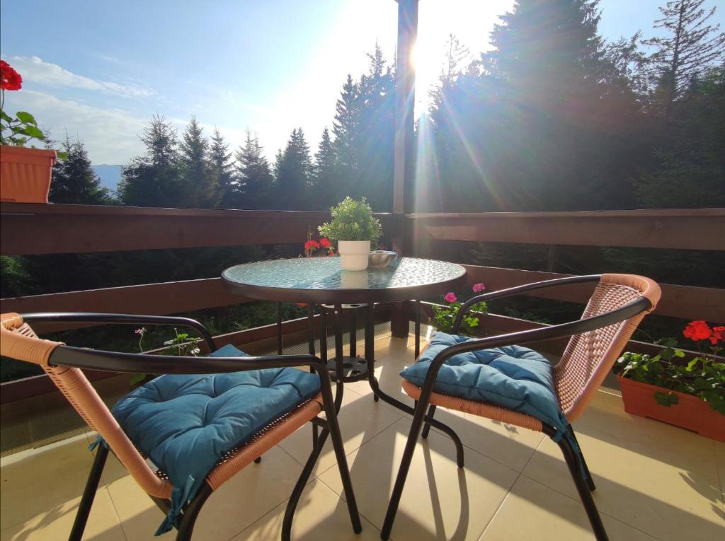 Welcome to Panorama Pine Retreat! Nestled among the tall pines of Predeal, Panorama Pine Retreat offers both serenity and comfort. Two cozy bedrooms, a bright open living room, and a balcony with forest views invite you to slow down and breathe. A fully equipped kitchen (oven, stove, fridge, dishwasher, Bosch Tassimo machine), washing machine, fast Wi-Fi, and private parking ensure a carefree and relaxing mountain escape.