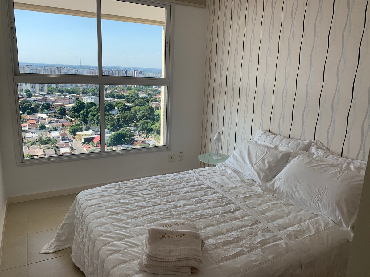 Duplex penthouse with a beautiful view of Manaus. The apartment is new and fully equipped: we have sheets, towels, liquid soap, a refrigerator, stove, washing machine, iron and Wi-Fi. In addition to a balcony with a barbecue area with a high ceiling to enjoy the sunset. The 3 air-conditioned bedrooms are on the upper floor. On the lower floor is the kitchen, balcony and a living room with air-conditioning and a sofa bed. Come stay with us and feel at home