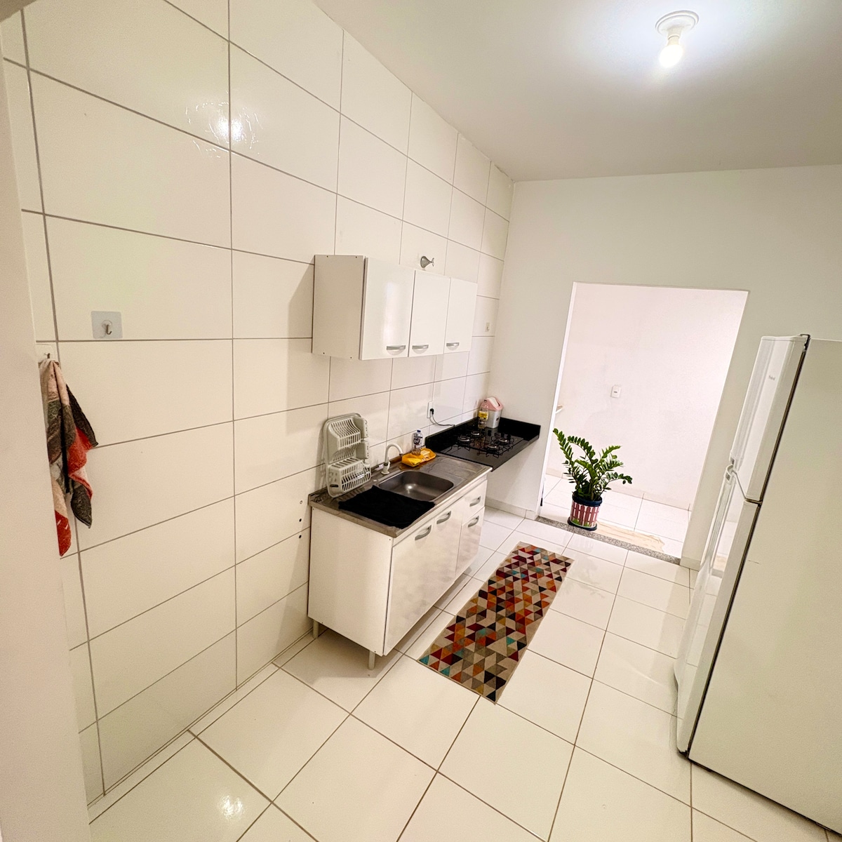 Complete apartment, 8 minutes from downtown, 50 meters from a sports square, quiet, well ventilated and peaceful place. The room features a queen-size bed, bedding, pillows and blanket, TV with open channels (TV, Netflix, YouTube), fan (we do not have air conditioning, but the room is cool and ventilates well), and a closet with hangers. Kitchen equipped with basic utensils, cabinets, stove, refrigerator. WC with hot shower.