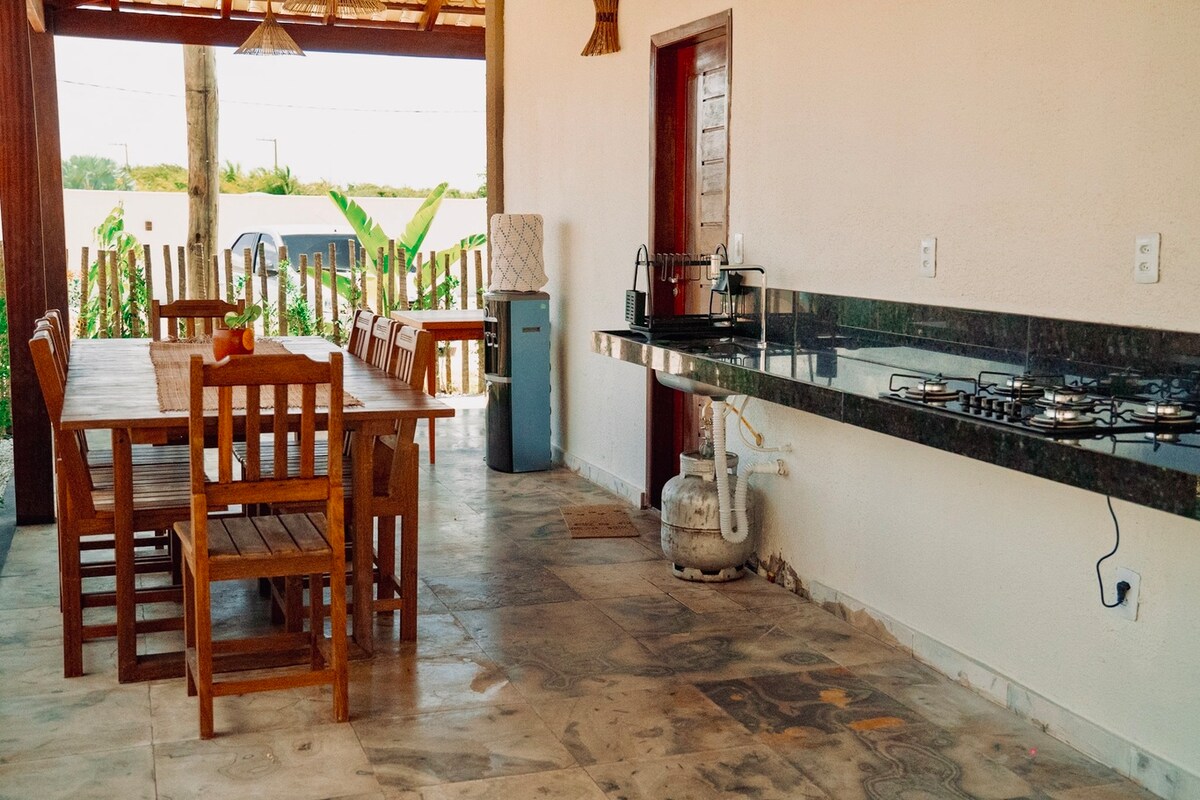 We are Casa Amani Linens New, comfortable and well-ventilated property. 🛌 1 Bedroom with exit to outdoor garden, air conditioning, smart TV and 1 queen bed, 1 full bed and 1 single 🚿 1 Bathroom electric shower Living ✨ Room/Kitchen integrated environment, well-equipped kitchen, laundry and 1 comfortable queen sofa bed 🌴 Exterior private environments with hammock and shower, while the yard and parking are shared with house 1 📍 Location 1 km from the river and 2 km from the entrance to the national park