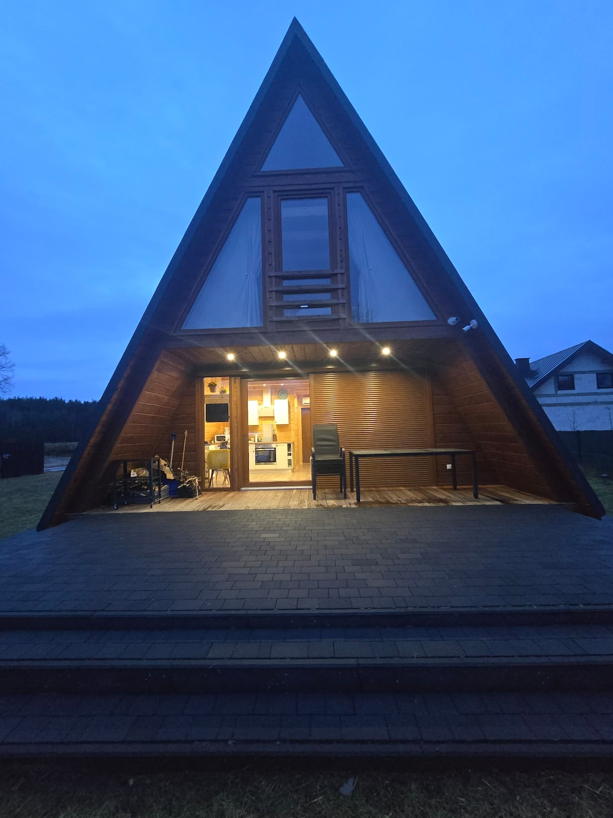 Zapraszamy wszystkich poszukujących kameralnego, pięknego miejsca na wypoczynek Znajdziecie tu: designerską, wyposażoną kuchnię, łazienkę z dwuosobową wanną, komfortową sypialnię z możliwością oglądania filmów w kinowych warunkach (projektor) dwuosobowy stół, krzesła, szafkę i wieszaki, klimatyzację kominek i drewno ogromny taras ogrodzony teren huśtawkę rowery hamak maty do jogi ścieżki piesze i rowerowe święty spokój i ciszę Zapraszamy ze zwierzętami!