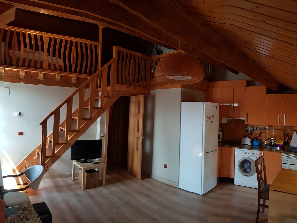 The whole group will be comfortable in this spacious and unique space. It has a large living area to enjoy with family or friends and you can relax on its terrace with mountain views. It consists of a bedroom with a 1.50 bed with an aloe vera pillow, a large bathroom with a shower, a kitchen with kitchenware, a refrigerator, an oven, a microwave, a toaster, a coffee maker, etc., and an open sitting area, a sofa that converts into a bed and a loft with two comfortable 90 beds each.