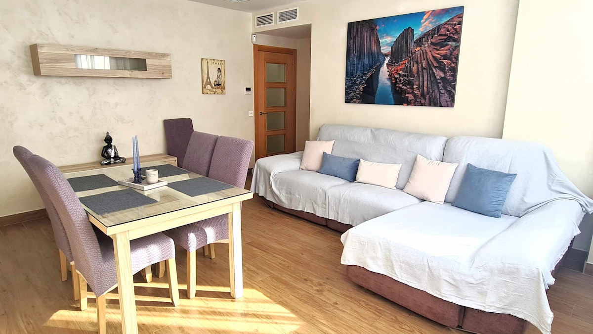 2 bedroom apartment with double beds plus a sofa that can be used as a bed. It is located in one of the best areas of Roquetas de Mar, surrounded by all kinds of services, and a 10-minute walk to the beach. Bars, pubs, cinemas, shopping mall, medical service, pharmacies, and a long etc. just outside the accommodation. Any questions, ask me! I'm happy to welcome anyone from anywhere in the world. Thank youuuu