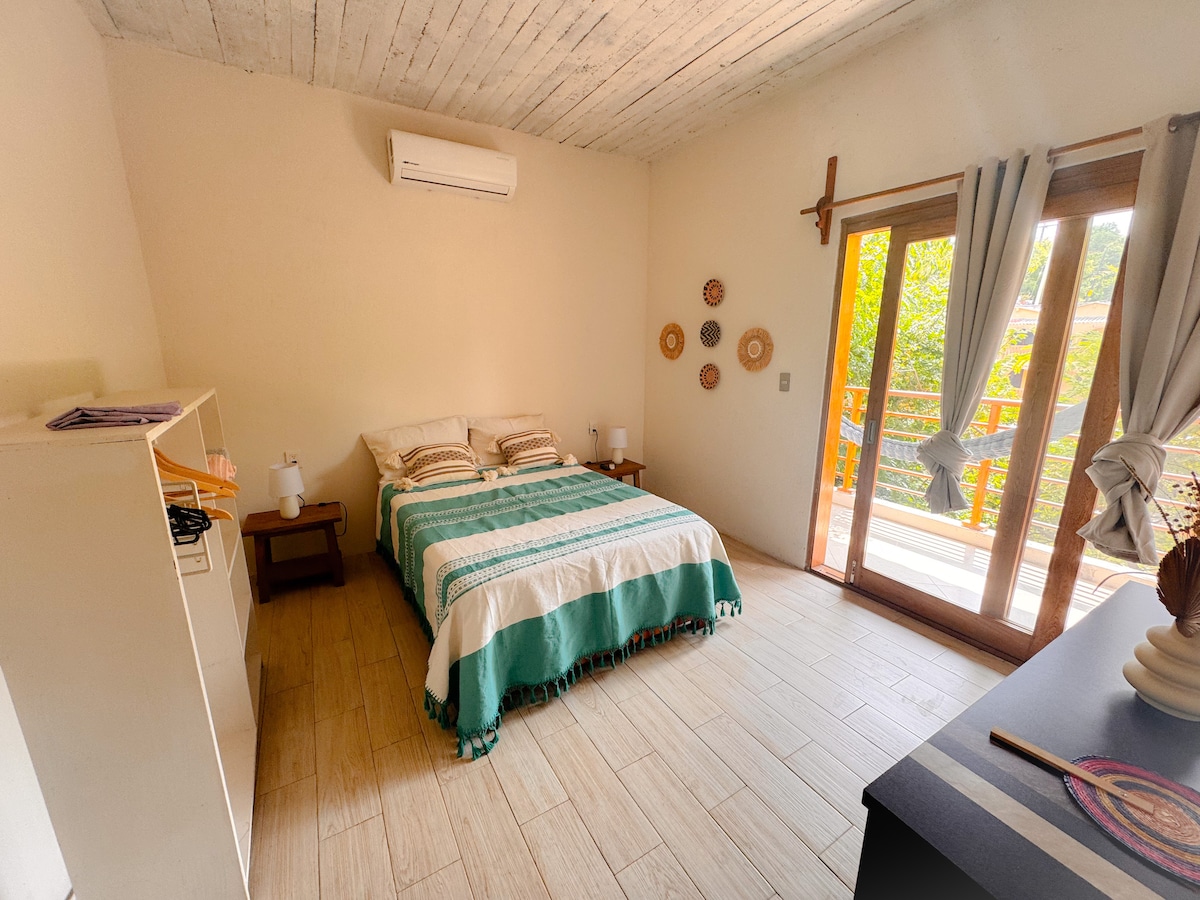 Departamento ALEBRIJE : Perfecto para hasta 3 personas con cama matrimonial y una segunda cama individual, adaptado para estancias largas y cortas. Disfruta aire acondicionado, gran iluminación, baño privado y WIFI Starlink. A solo 1 min de la playa principal, tu lugar ideal para relajarte. 🐚