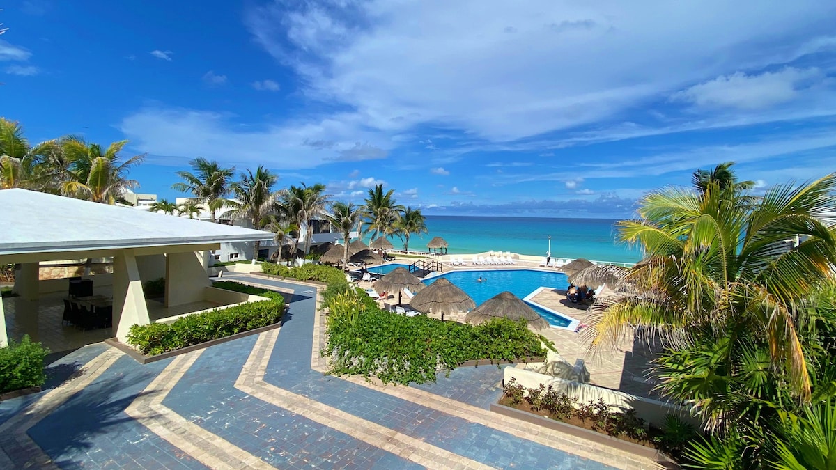 Directly on the beach. Views are spectacular as soon as you walk through the front door. Both the living room and the bedroom have views of the sea. Facilities like pools, jacuzzi, lounge chairs, shades, gym, tennis court are available for you (for free) High speed Wifi All inclusive optional through the hotel for food and drinks as we share facilities with Oleo Cancun resort (today $95 usd p/p per day) There are also 3 restaurants across the street (a la carte) + a convenience store.
