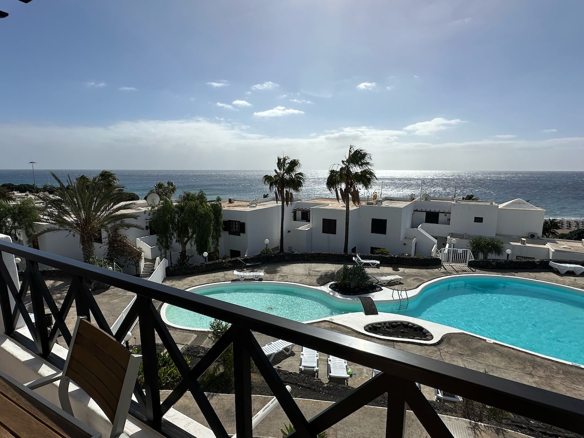 Apart. new, bright, overlooking the sea in one of the best areas of Puerto del Carmen. The terrace is great for breakfast or dinner watching the sea and pool. With all the amenities: Wiffi, air conditioning ,, safe, dishwasher, washing machine, fridge freezer, TV 50 ", kettle, coffee maker, utensils (pots, pans, dishes, cutlery, ...), pool Children + adults, playground, private parking. Bars, restaurants and large supermarket at 300 meters. Chica beach at 500 meters.