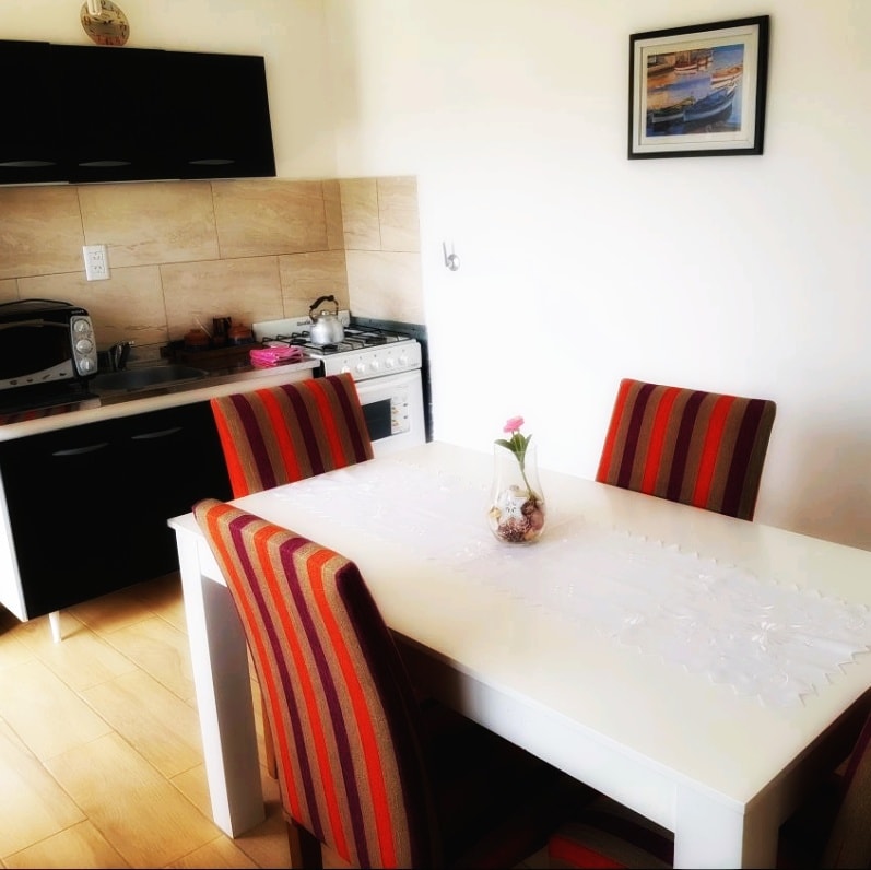 Downtown apartment with an indirect view of the Ria de Puerto Deseado, with spacious and sheltered rooms. Configurable room with a double bed or two single beds and a sofa bed in the dining room-kitchen. Very bright. Free parking on the premises. Coffee, tea, yerba mate are left for consumption. A complimentary bottle of mineral water is provided and a minibar is available for an additional fee. Double base rate does not include taxes.