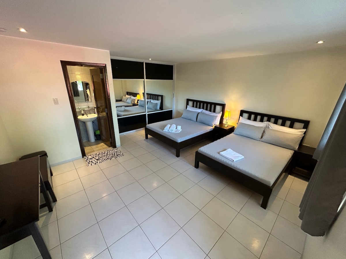 Good for 9–10 guests. The space has its own bathroom with hot shower and is located on the ground floor, making it ideal for families, friends, or colleagues. One group only (not for separate groups). Equipped with air-conditioning and an electric fan. Just 3–5 minutes’ walk to Ayala Zobel Beach (Aninuan Beach) 🌊