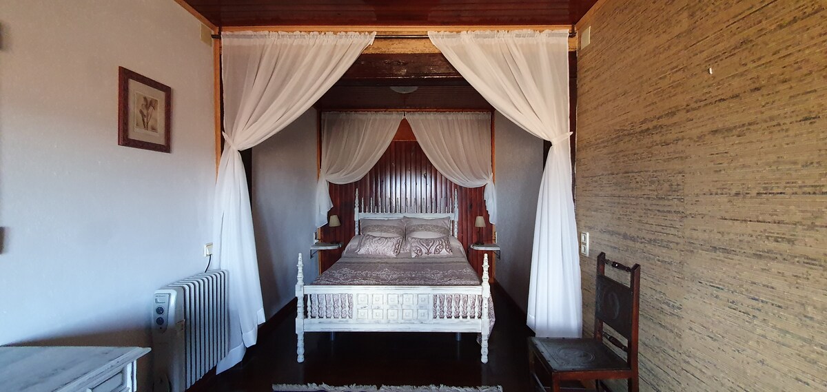 Suite room with indoor Jacuzzi and stunning views in a 16th-century farmhouse. Relax and romance. Access to living room, dining room, kitchen, game room and gym. Stay in this unique accommodation and enjoy an unforgettable visit.