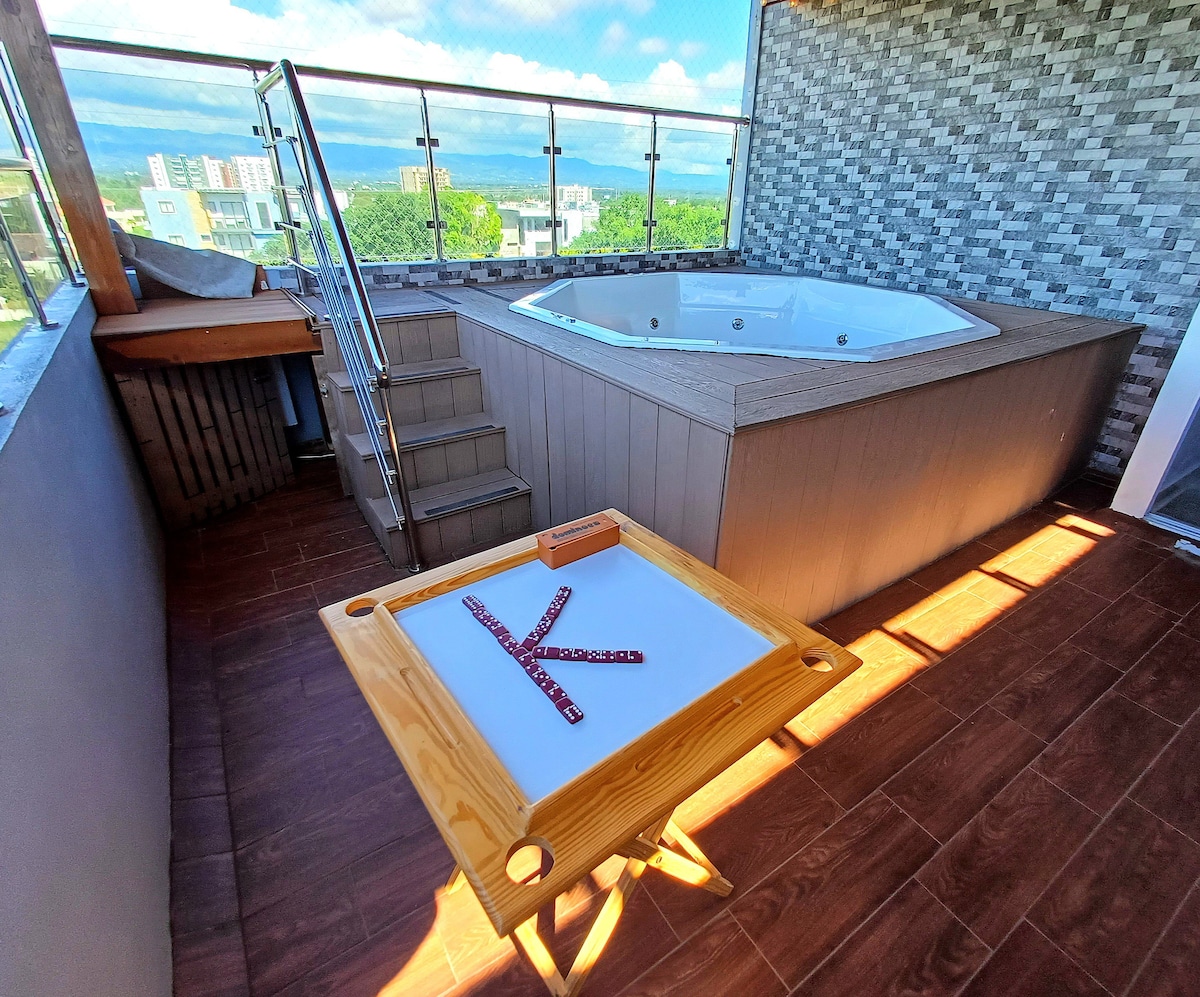 Enjoy a unique experience in this exclusive and fully equipped apartment, designed for rest, fun and special moments. Ideal for couples, families, or groups looking for comfort and entertainment without leaving the accommodation. The apartment has a large private jacuzzi, perfect for relaxing, a pool table, darts and a variety of board games such as dominoes and playing cards. In the Jacuzzi area It has a private BBQ inside the apartment, ideal for comfortable and exclusive barbecues.