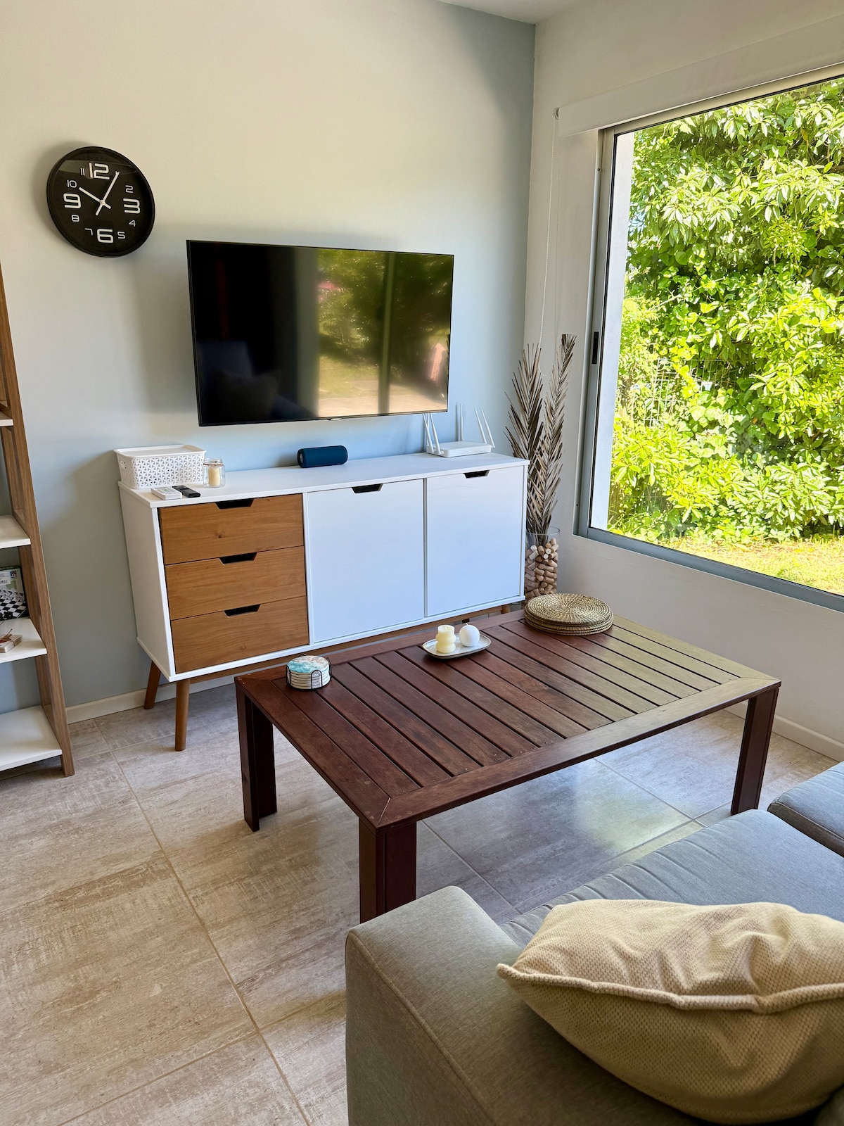 Enjoy your summer vacation in a quiet and safe setting, at this incredible chalé near Playa Mansa that has it all! The unit has a comfortable living room, Smart TV (with Netflix and Disney+), Wi-Fi, air conditioning, kitchen equipped with microwave, toaster, blender, extractor hood, and essentials for cooking, and full bathroom with extractor. Pergola for a car, patio with grill and bed linen and towels laundry option (prior coordination)