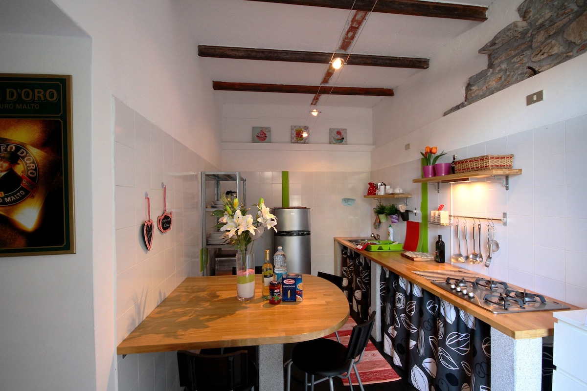 Gaze over stunning 180-degree views of islands on Lago Maggiore from the expansive, floor-to-ceiling windows of this lovely, 230-year-old rustic stone villa. Antique furnishings perfectly complement the historic architecture. The house is on 3 floors so a fair bit of walking up and down stairs is required. The main bedroom is on the upper floor and the 2nd bedroom (two single beds) and bathroom on the lowest floor. Ideal for couples and families but not for the elderly or groups of 4 adults.