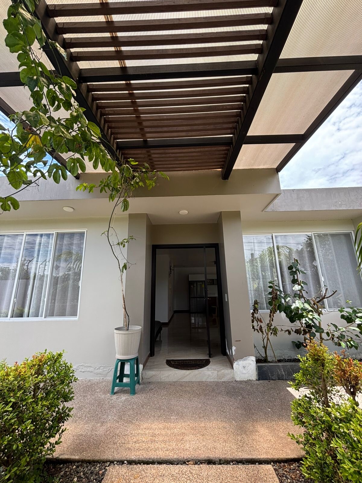 This house is ideal for you and your family! It is located 8 minutes by car from downtown El Puyo, surrounded by the Amazon rainforest, with a nature trail and access to the Puyo River, so you can enjoy nature and recharge your batteries. The space Spectacular house of 450 m2, with a modern and luxury style, super comfortable, with natural ventilation. Fiber-optic internet and Wi-Fi are available. Outdoor pergolas with a living and dining area. Parking for five cars. Electric fence, alarm, security cameras.