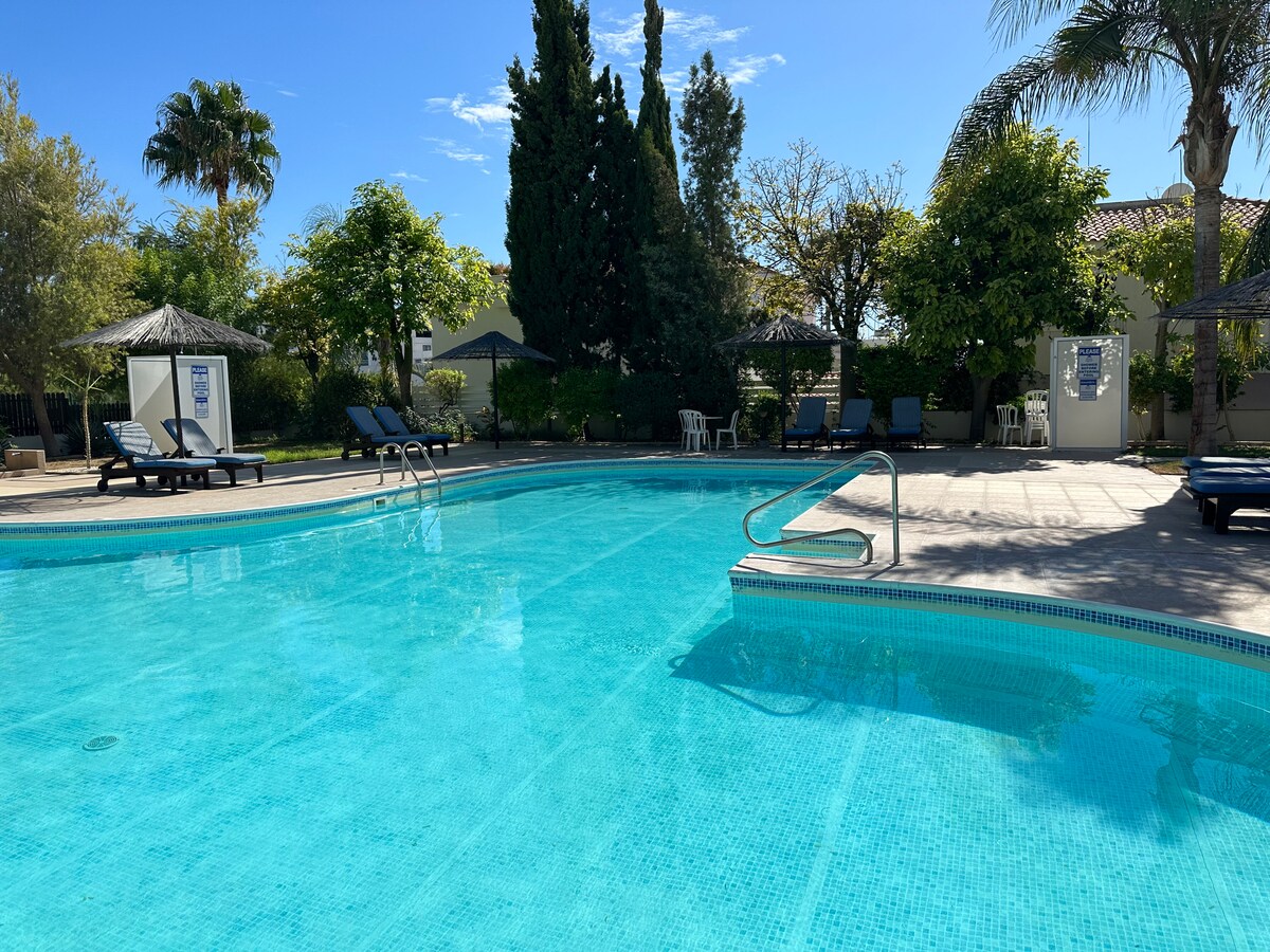 Cosy studio at Palm Beach gated complex just accross the beach with a big swimming pool, tennis court, huge garden a barbecue area, free parking and amazing patio view. All essential kitchen appliances available as well as smart TV & WiFi 200mb Superb location closed to all amenities, bakery, supermarkets, restaurants, cinema, famous beach bars & night clubs. Bus coastal line available to the historical center and beach locations. The studio has been recently redecorated and looks stunning.