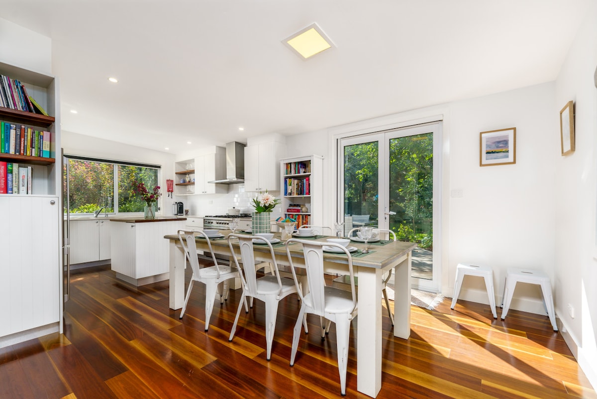 💎 This is Canberra’s most wishlisted AirBNB. Hiding with private entry, is a bright little 1-bed, 1-bath house with free XL parking. Inside you’ll find raked ceilings, Australian bohemian decor and a rare upcycled gymnasium timber floor. It’s spacious, self-contained and centrally located. A short walk to local restaurants, cafes, pubs and supermarkets. Ride the MetroTram to CBD for world-class restaurants, shops and nightlife. This is your peaceful private getaway. Dogs welcome.